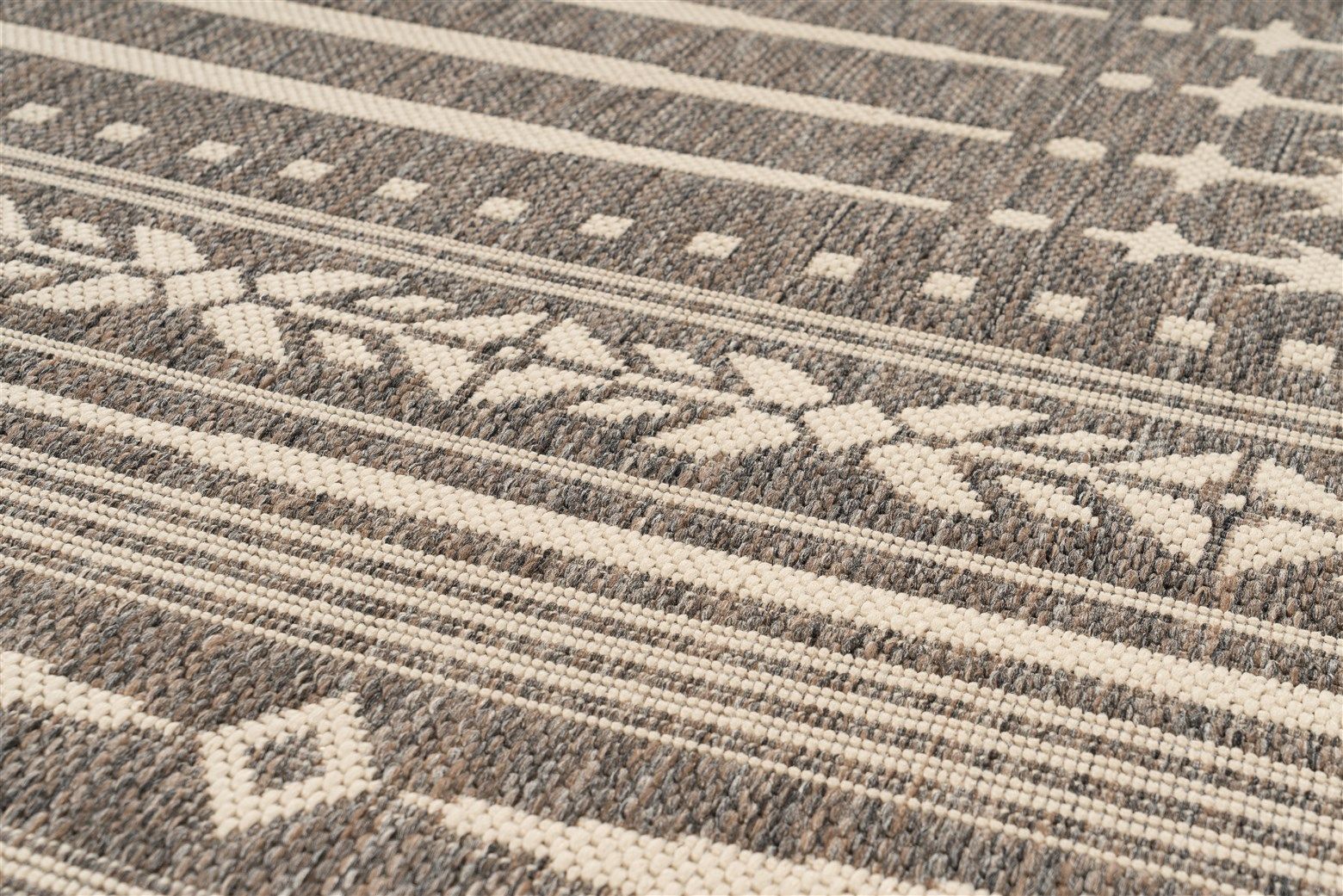 Avec ses couleurs discrètes et son design moderne, ce tapis tissé à plat crée une atmosphère chaleureuse sur le balcon ou la terrasse. Grâce à sa fibre synthétique en polypropylène, il est à la fois imperméable et résistant aux intempéries.