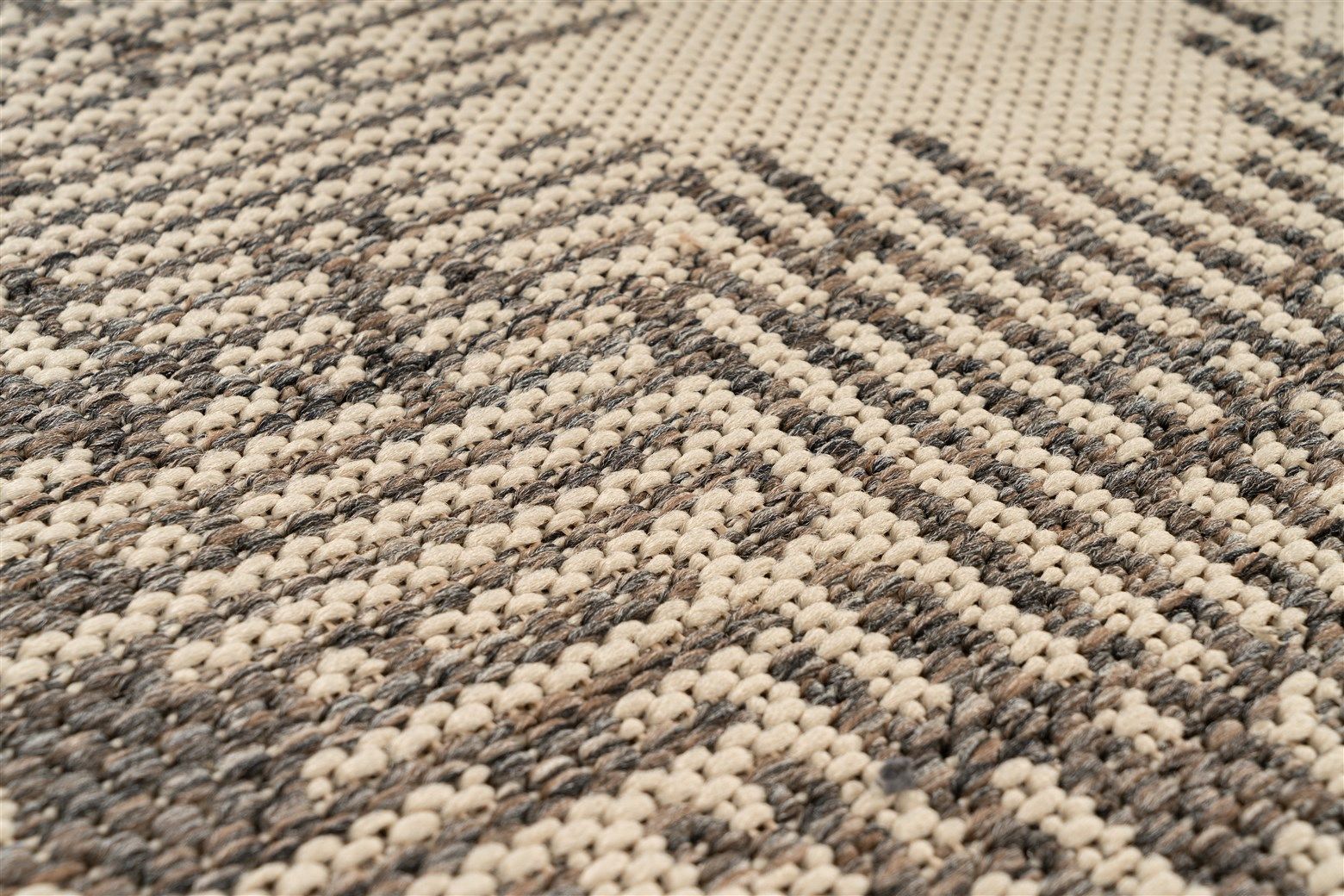 Avec ses couleurs discrètes et son design moderne, ce tapis tissé à plat crée une atmosphère chaleureuse sur le balcon ou la terrasse. Grâce à sa fibre synthétique en polypropylène, il est à la fois imperméable et résistant aux intempéries.