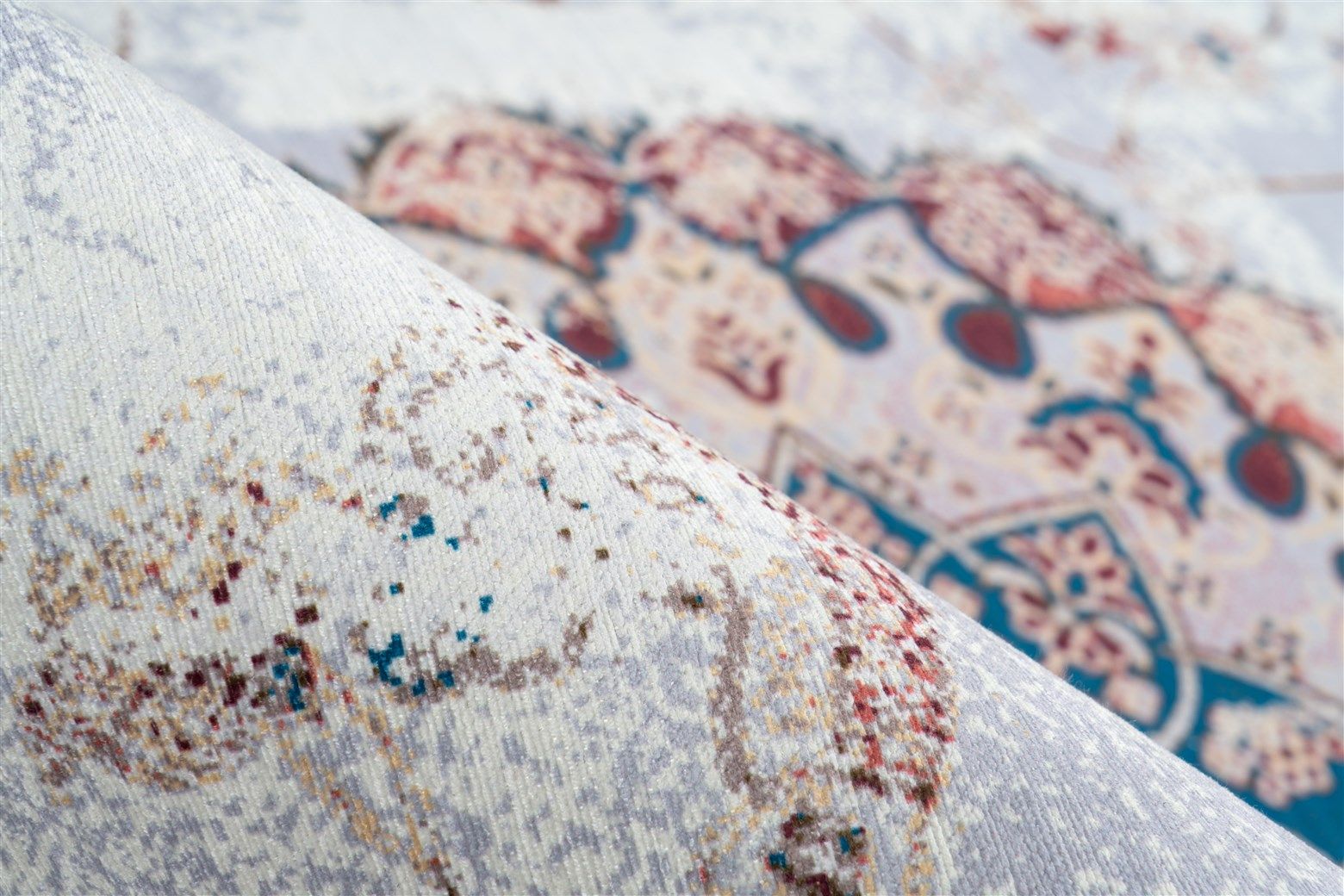 • Tapis au design vintage, motifs décoratifs, dégradés stylés, avec dos en feutre.