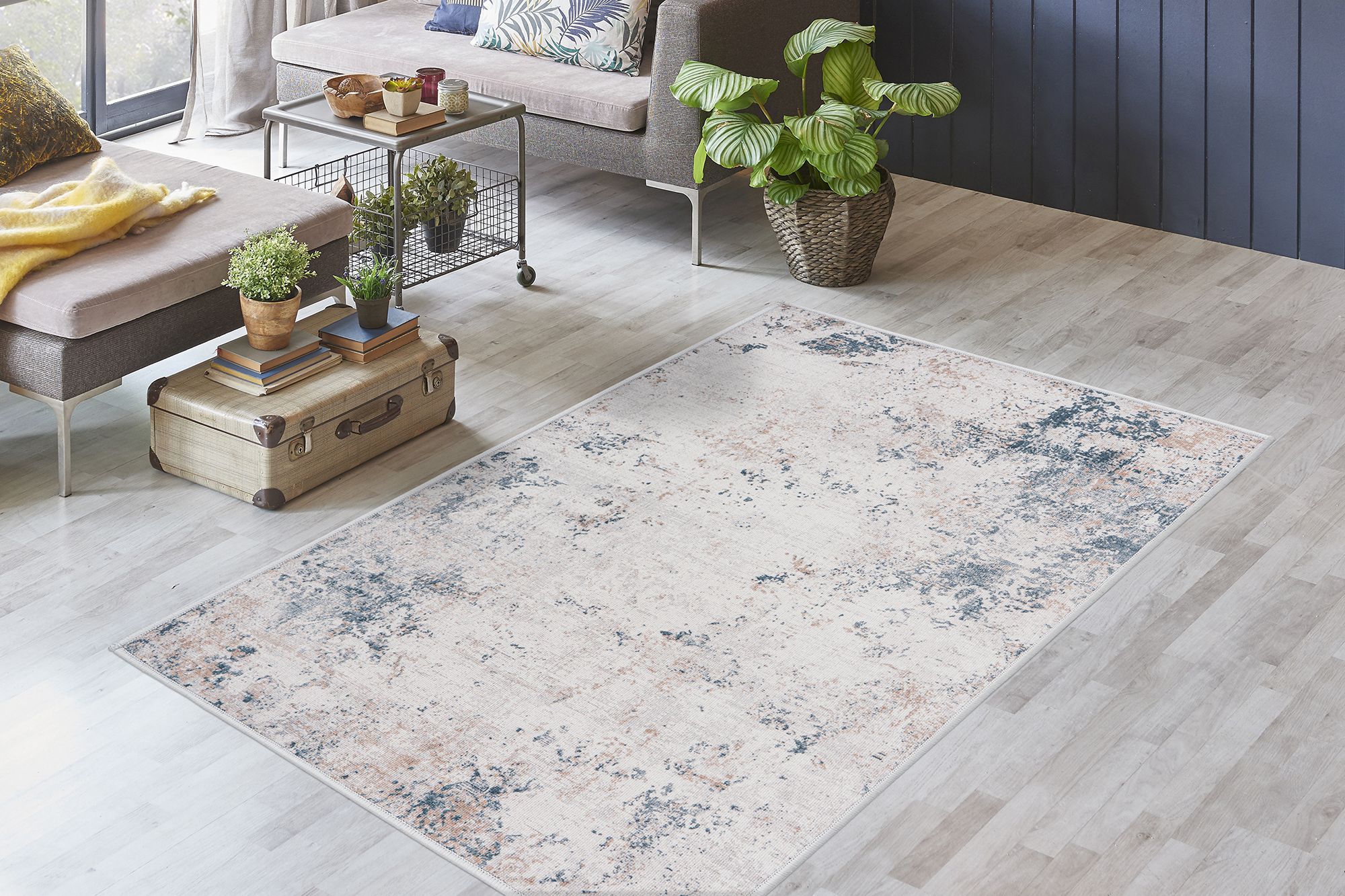 Ce tapis de grande qualité, proposé dans des couleurs discrètes, séduit par son design romantique. Le dessus de ce tapis tissé à plat est composé à 100 % de polyester et le dessous est doublé en pur coton. Cela rend le tapis particulièrement agréable et offre une sensation de douceur et de bien-être. Imprimé avec soin, ce tapis se distingue également par son toucher agréable et sa grande robustesse, en faisant le choix idéal pour les chambres à coucher et les chambres d’enfants !