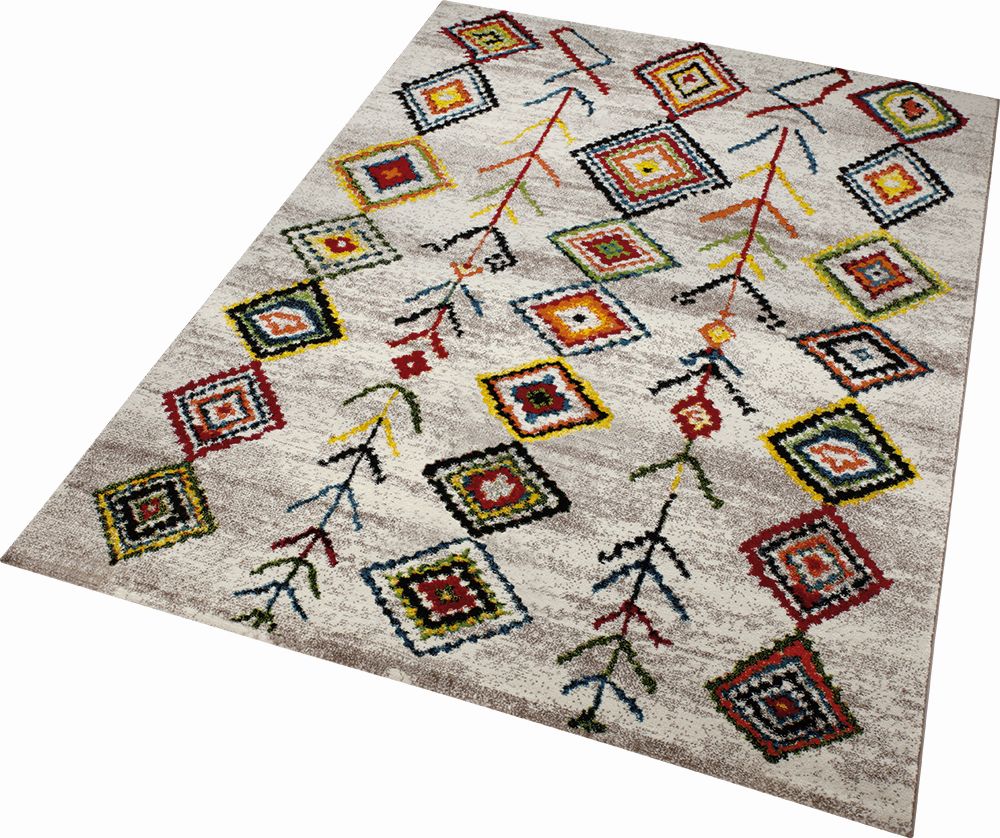 WECONhome Teppich COLORFUL MARRAKESH : tradition et innovation.La rencontre entre Orient et Occident.Les motifs abstraits colorés de ces superbes tapis tissés rappellent l'artisanat d'art traditionnel des berbères. Mais en jetant un œil sur les matériaux et la finition, on s'aperçoit que ces "tapis d'Orient" sont des accessoires ultra modernes et résistants en fibres synthétiques.