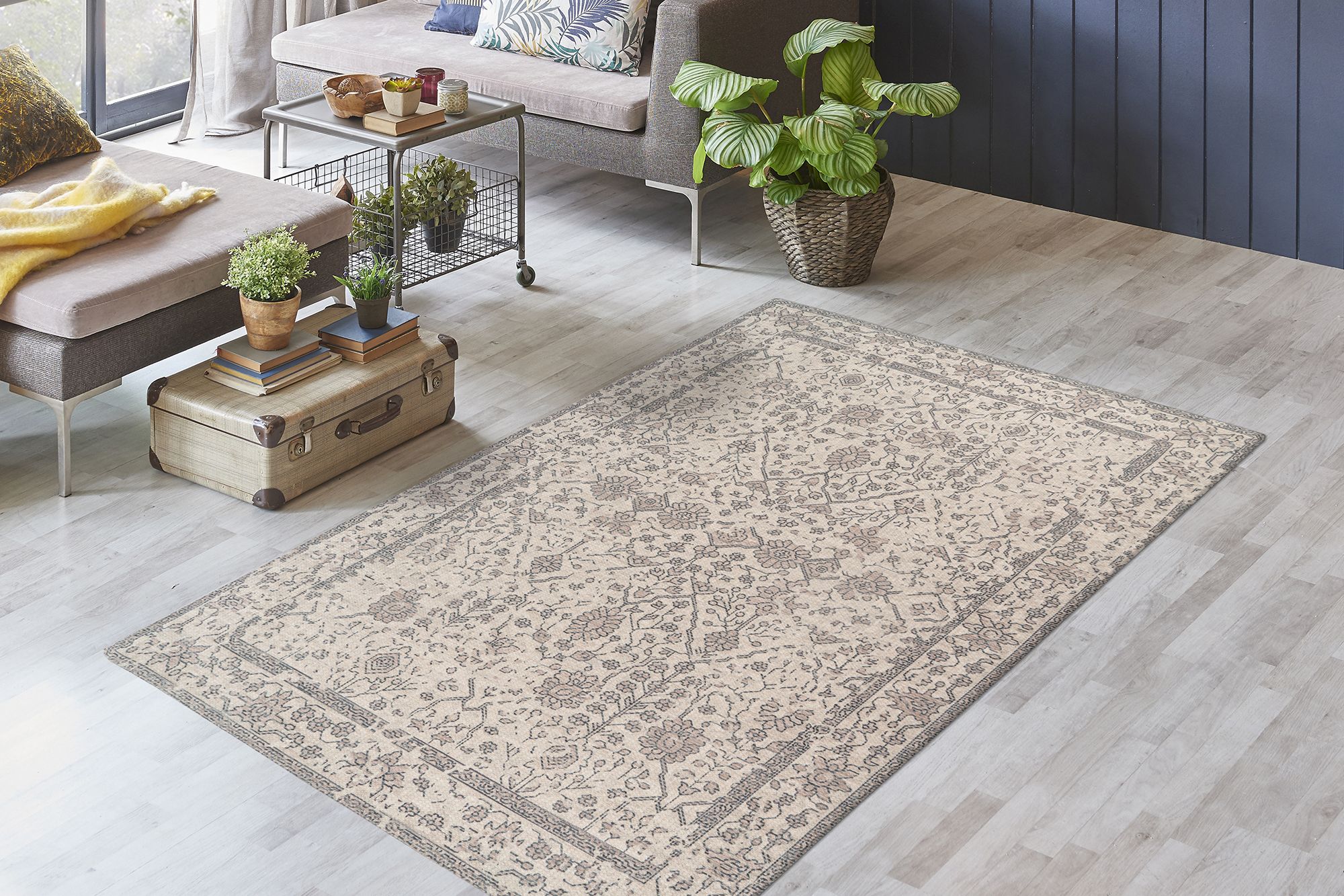 Ce tapis tendance séduit avant tout par son aspect vintage délavé. Il est composé principalement de coton et d'une part de polyester : ceci lui confère un aspect naturel et une qualité supérieure. Tissé à la machine, il dispose d’une épaisseur d’environ 13 mm qui le rend à la fois doux au toucher tout en étant robuste et résistant.