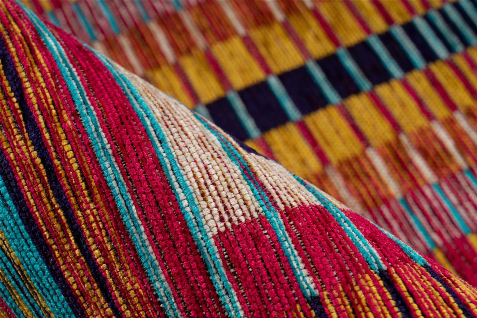 En fonction de l’angle d’éclairage ou de la direction des poils, des variations de nuances peuvent apparaître, mais elles n’altéreront pas l’éclat coloré et joyeux de ce tapis.