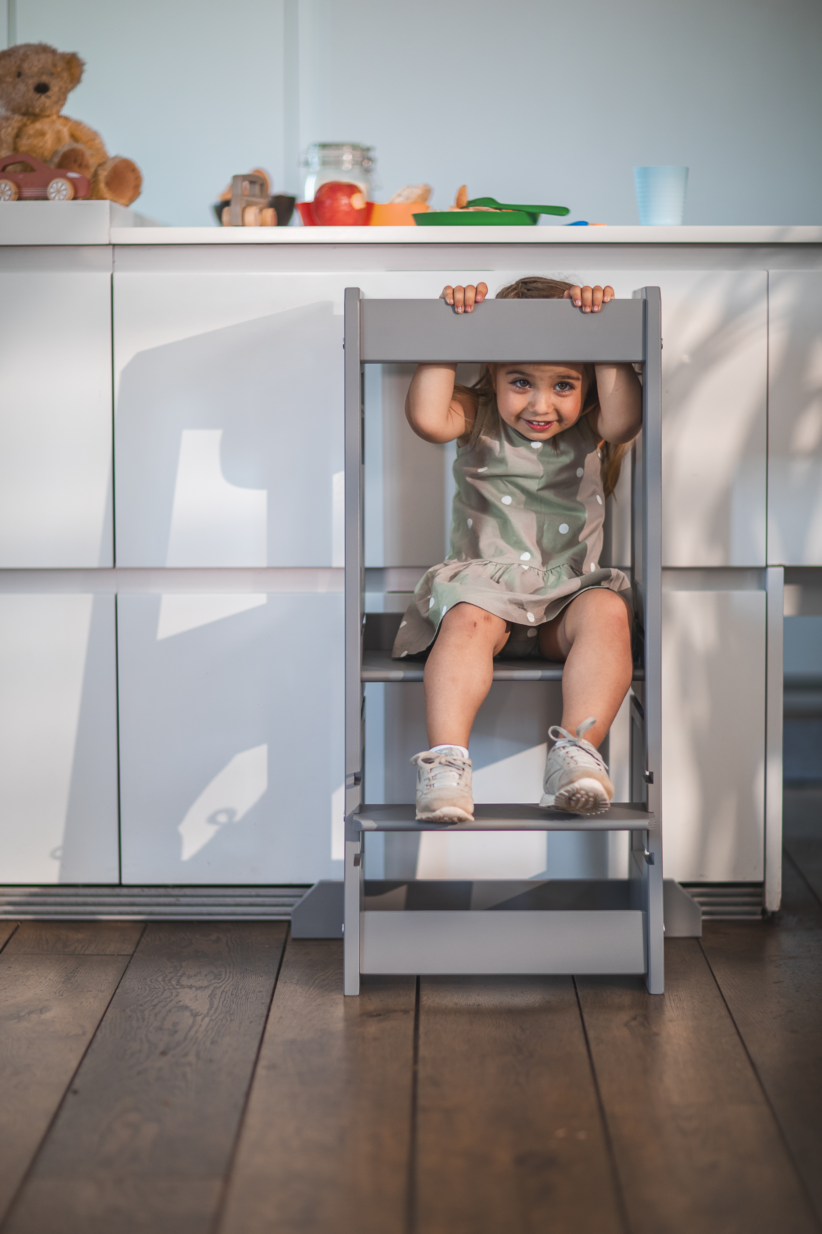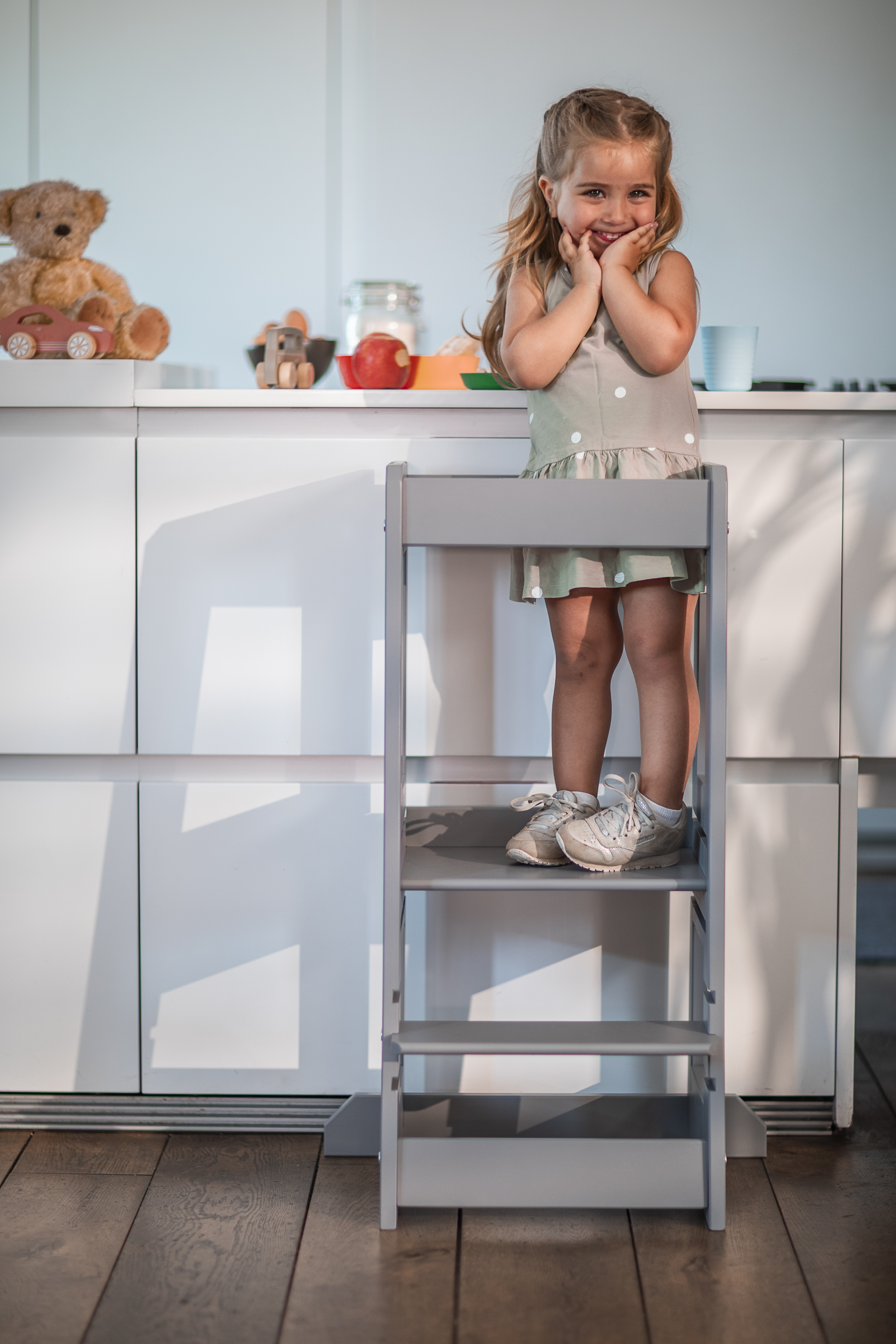 Un modèle évolutif : les tout-petits peuvent ainsi être à hauteur de plan de travail et aider dans la cuisine