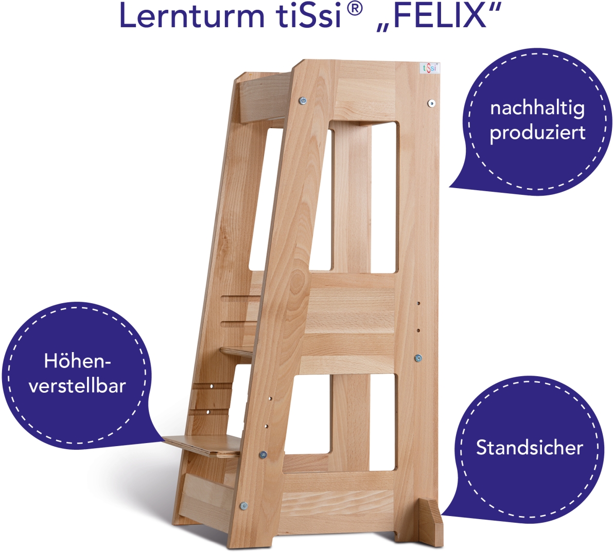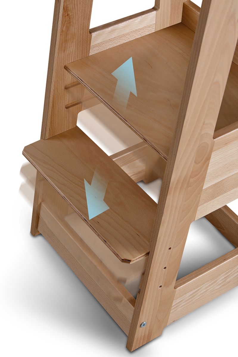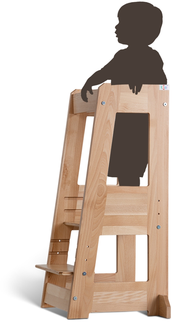 Cette tour d'observation peut s'adapter en un tour de main à la taille de votre enfant. La tour d'observation ultra stable est très pratique au quotidien pour les parents et offre aux enfants de 1 à 4 an(s) une liberté de mouvement adaptée