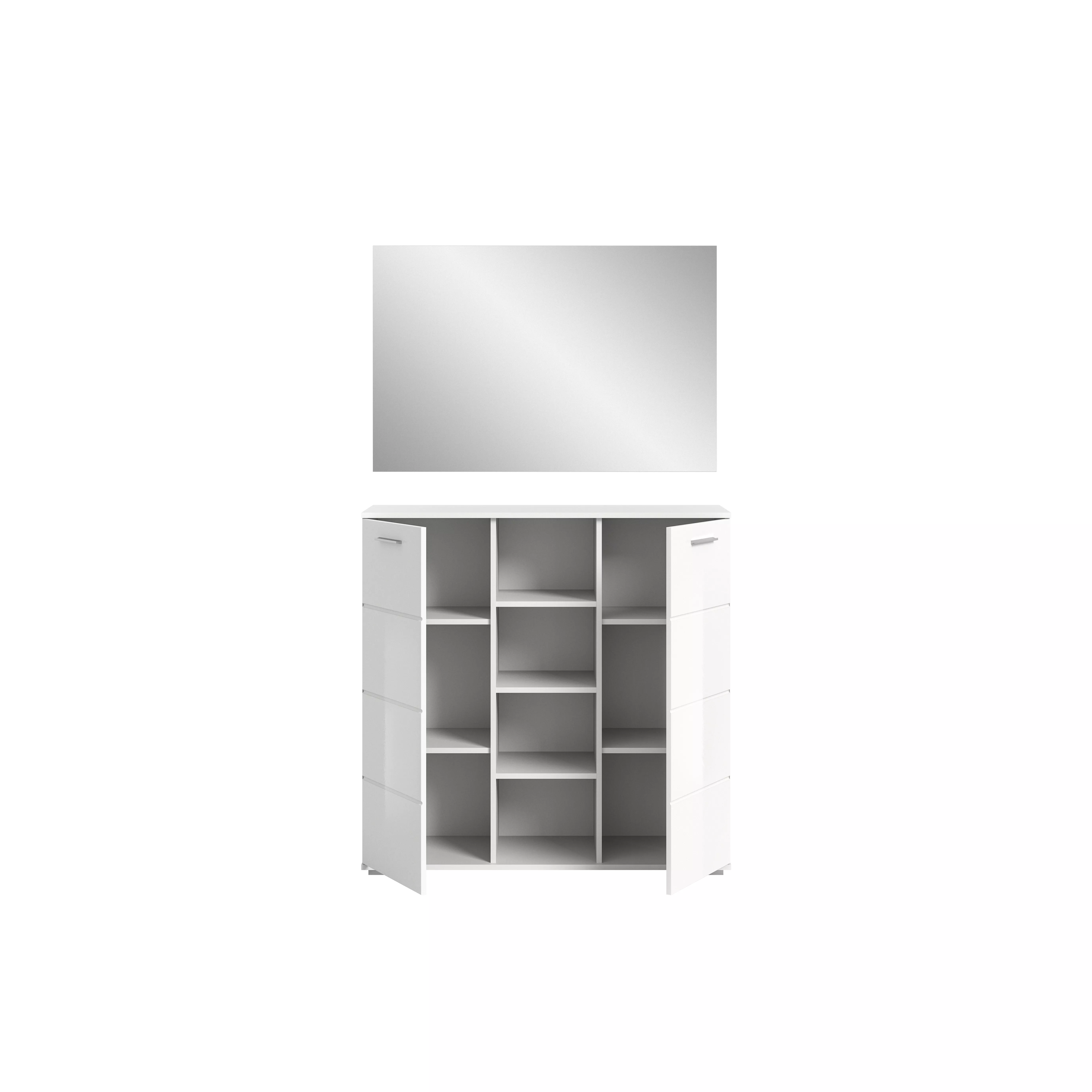 1 meuble à chaussures avec 4 casiers ouverts, 2 portes et 4 tablettes amovibles