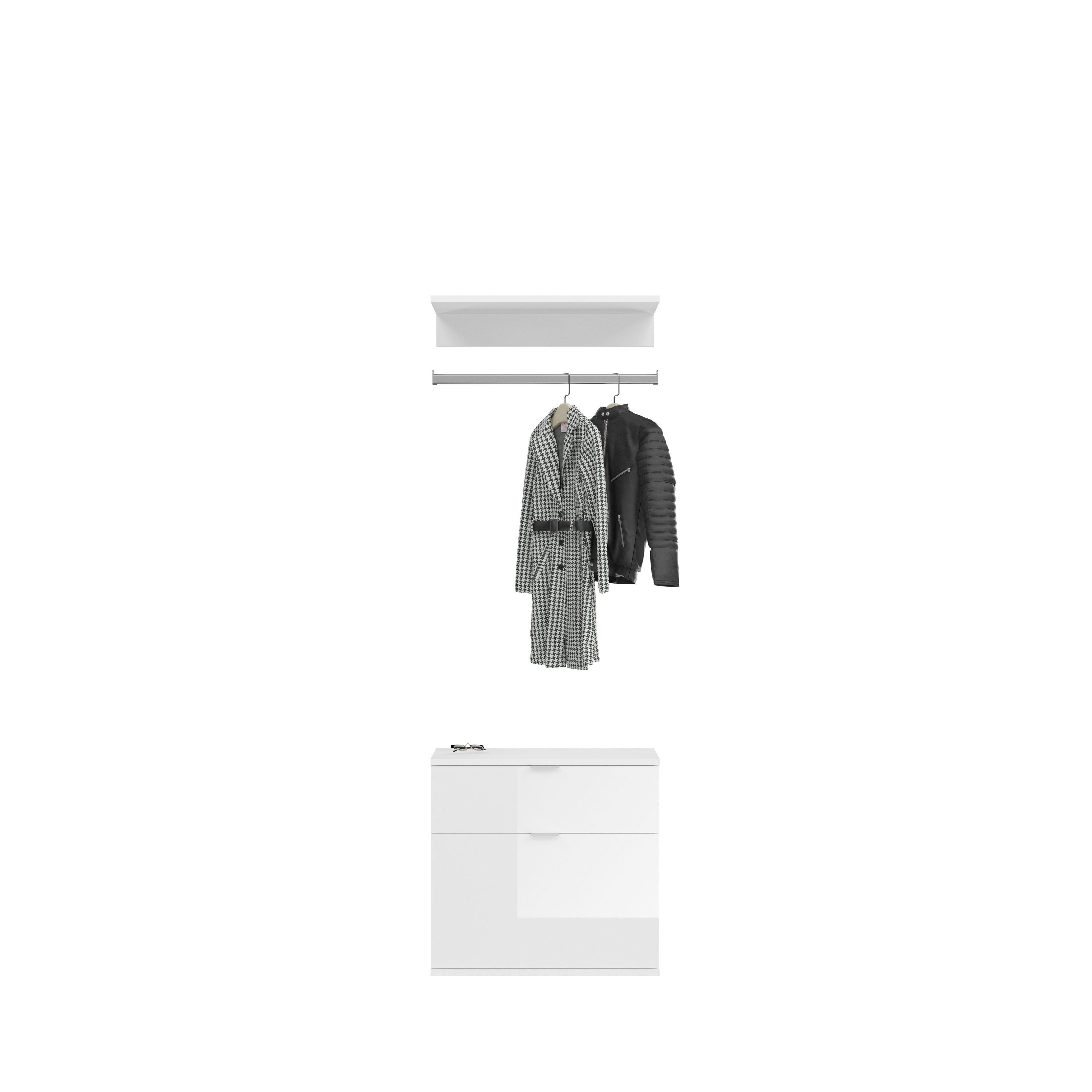 Transformez votre couloir, votre entrée, votre buanderie, votre bureau ou votre chambre à coucher à l’aide de ce vestiaire polyvalent avec barre de penderie intégrée. Le design élégant ton blanc et blanc ultra brillant conférera à votre pièce une touche moderne ; vous profiterez également d’un espace de rangement spacieux et d’une solution pratique pour ranger vos vêtements. Découvrez ce joli meuble peu encombrant pour un intérieur organisé et stylé.