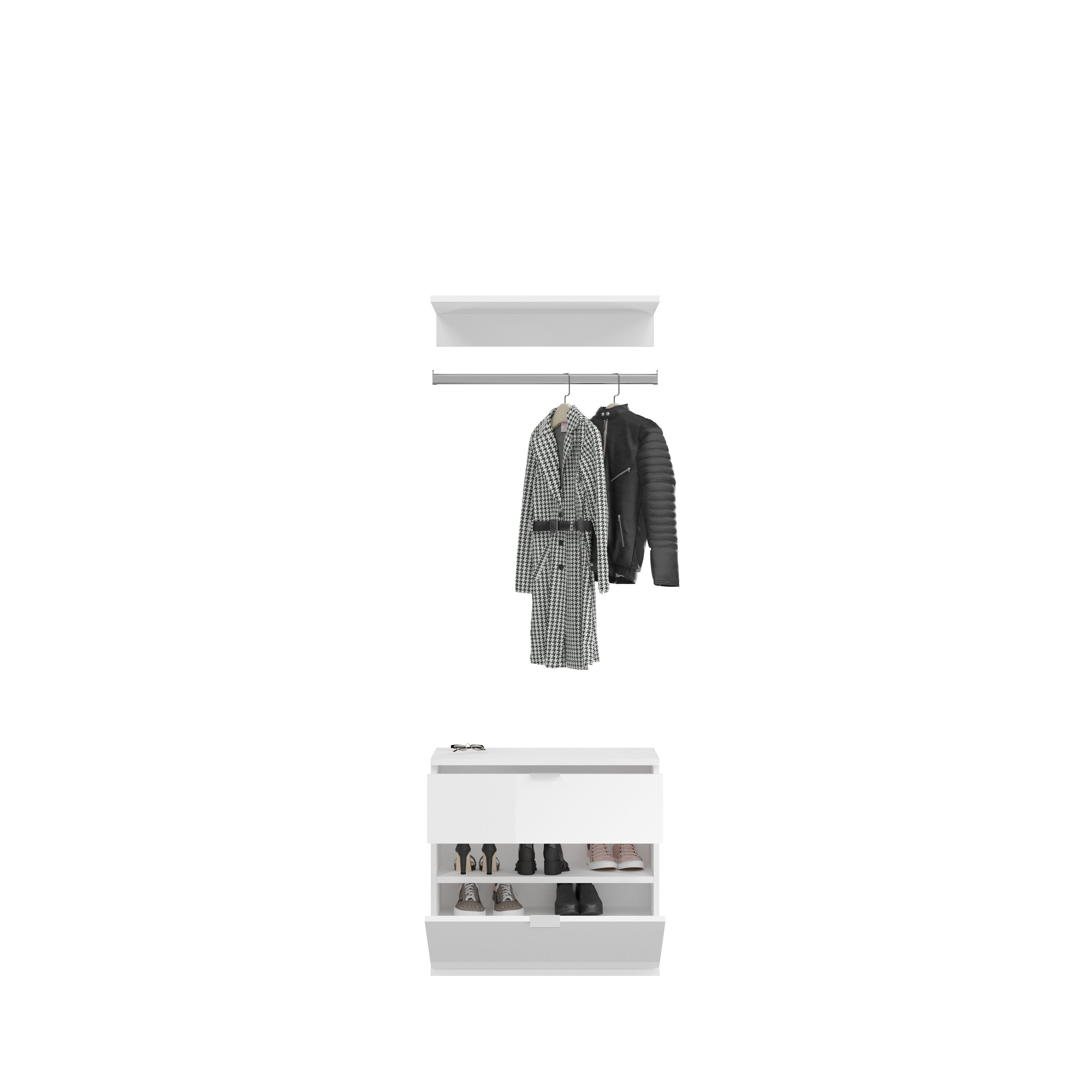- Design/style : le vestiaire combiné avec barre de penderie intégrée est proposé dans un design tendance et sobre ton blanc avec surface ton blanc ultra brillant. Les lignes claires et le design minimaliste conféreront à votre pièce une ambiance moderne et attrayante.