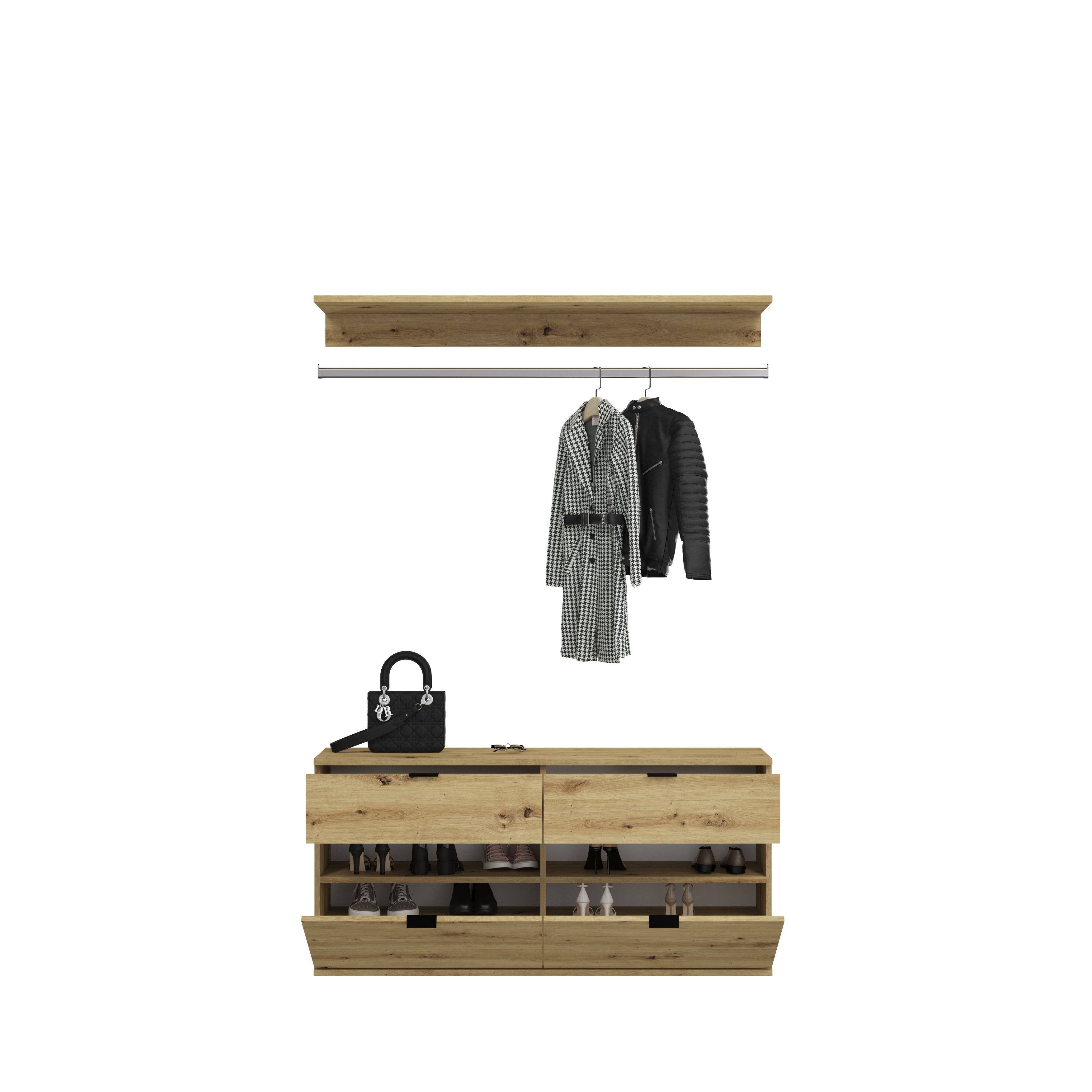 - Design/style : le vestiaire combiné avec barre de penderie intégrée est proposé dans un design tendance et sobre décor chêne Artisan. Les lignes claires et le design minimaliste conféreront à votre pièce une ambiance moderne et attrayante.
