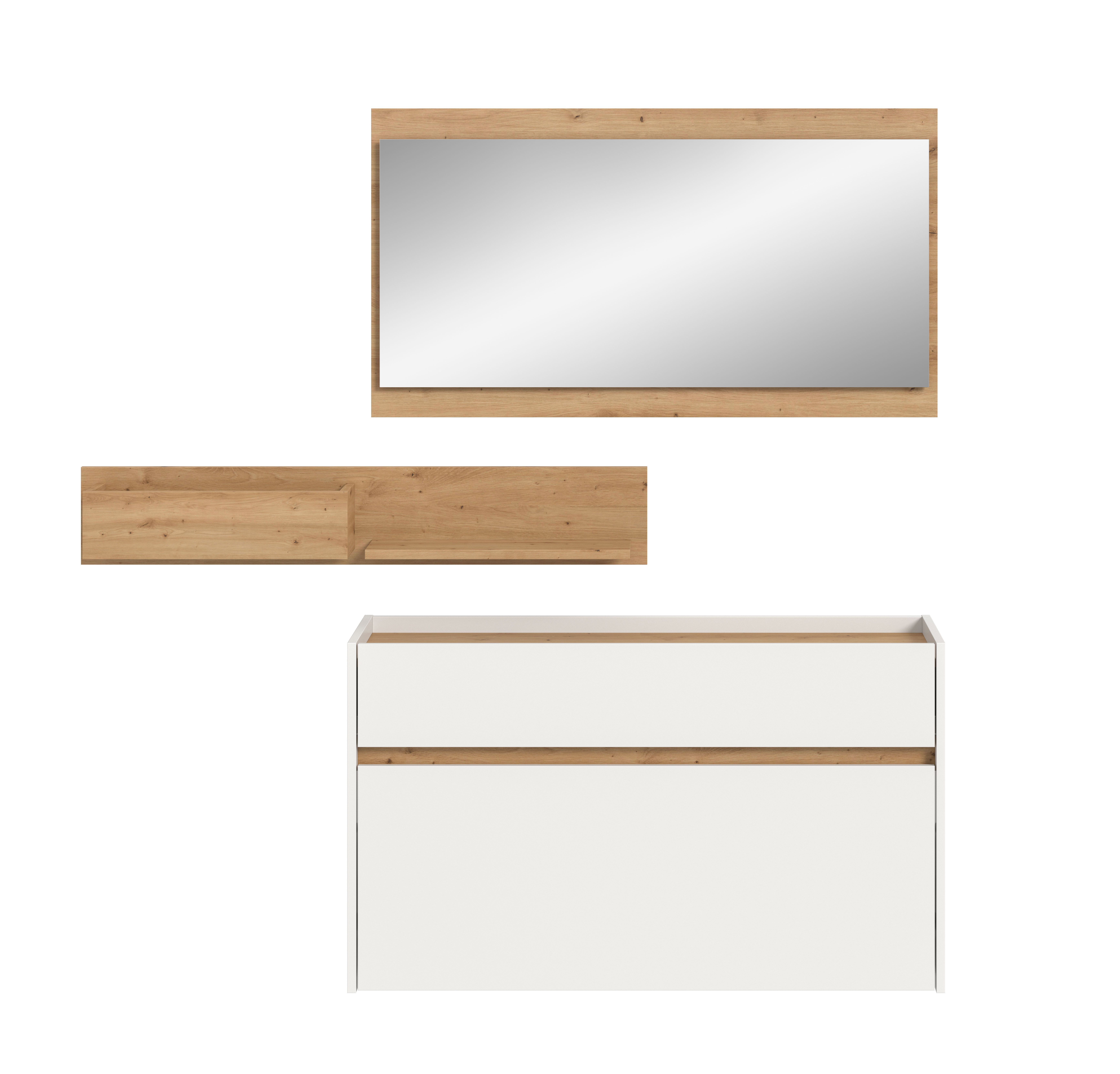 - Ensemble 3 éléments comprenant : 1 meuble à chaussures, 1 étagère murale, 1 miroir