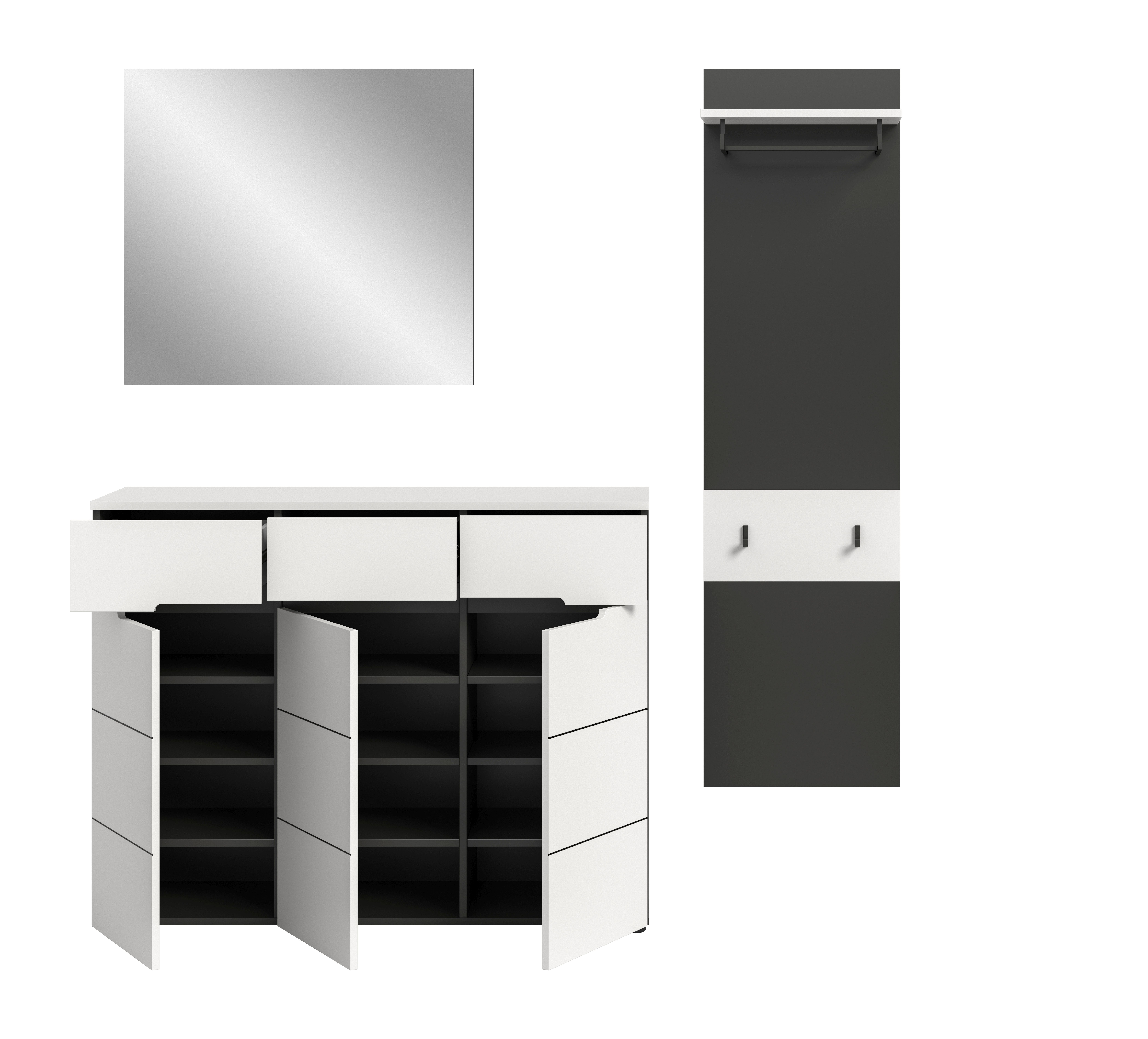 - Ensemble 3 éléments comprenant : 1 panneau portemanteau, 1 meuble à chaussures, 1 miroir
