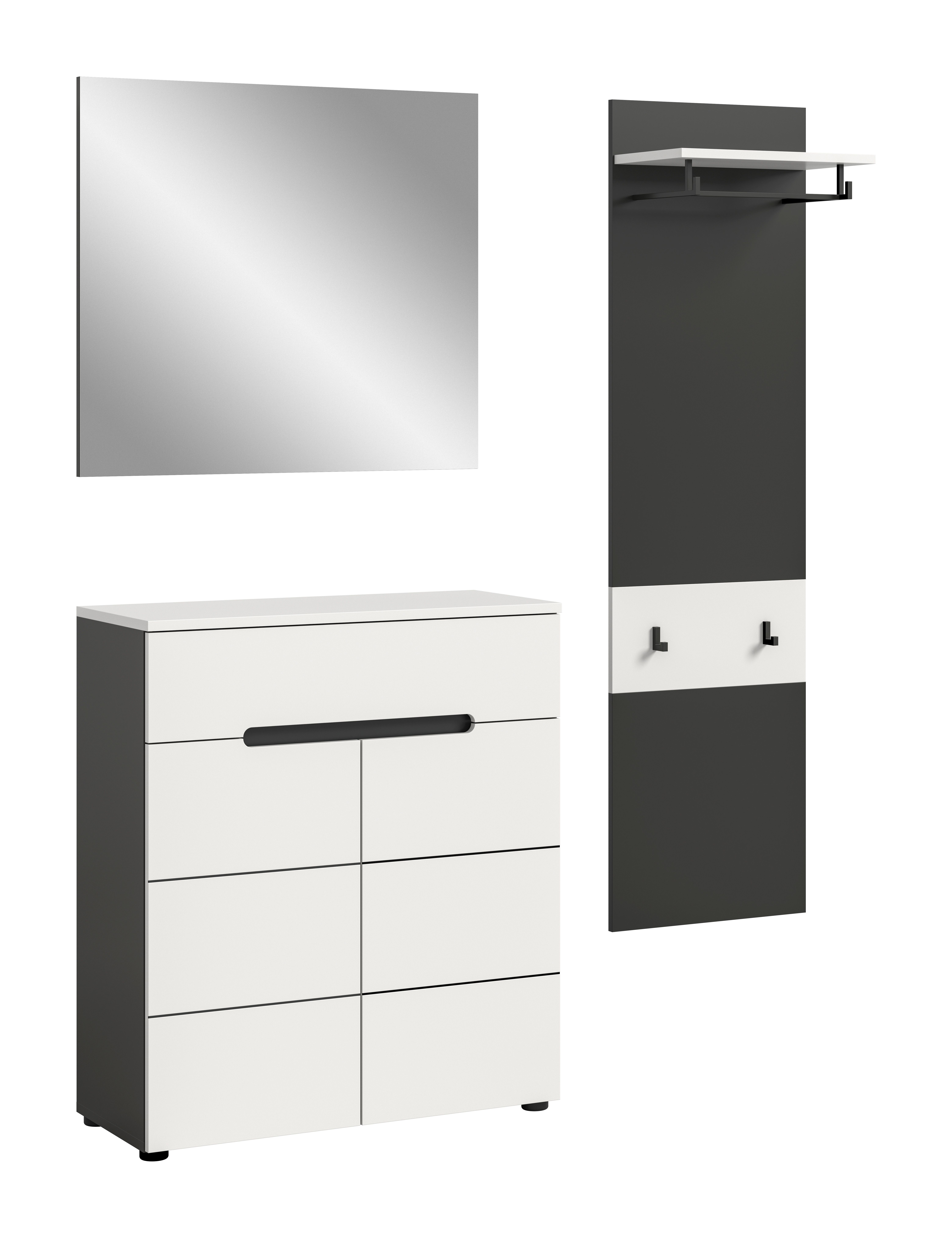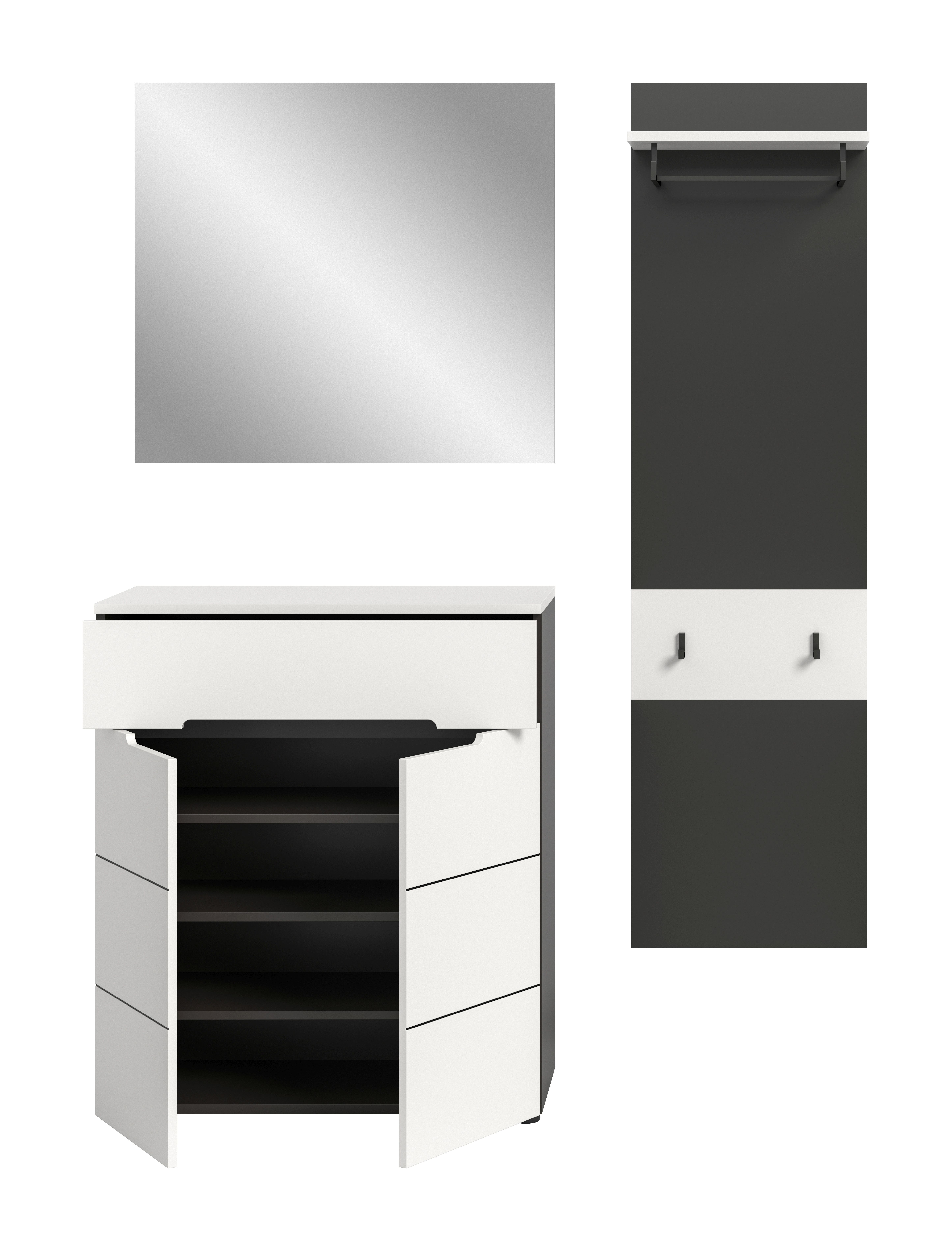 - Ensemble 3 éléments comprenant : 1 panneau portemanteau, 1 meuble à chaussures, 1 miroir