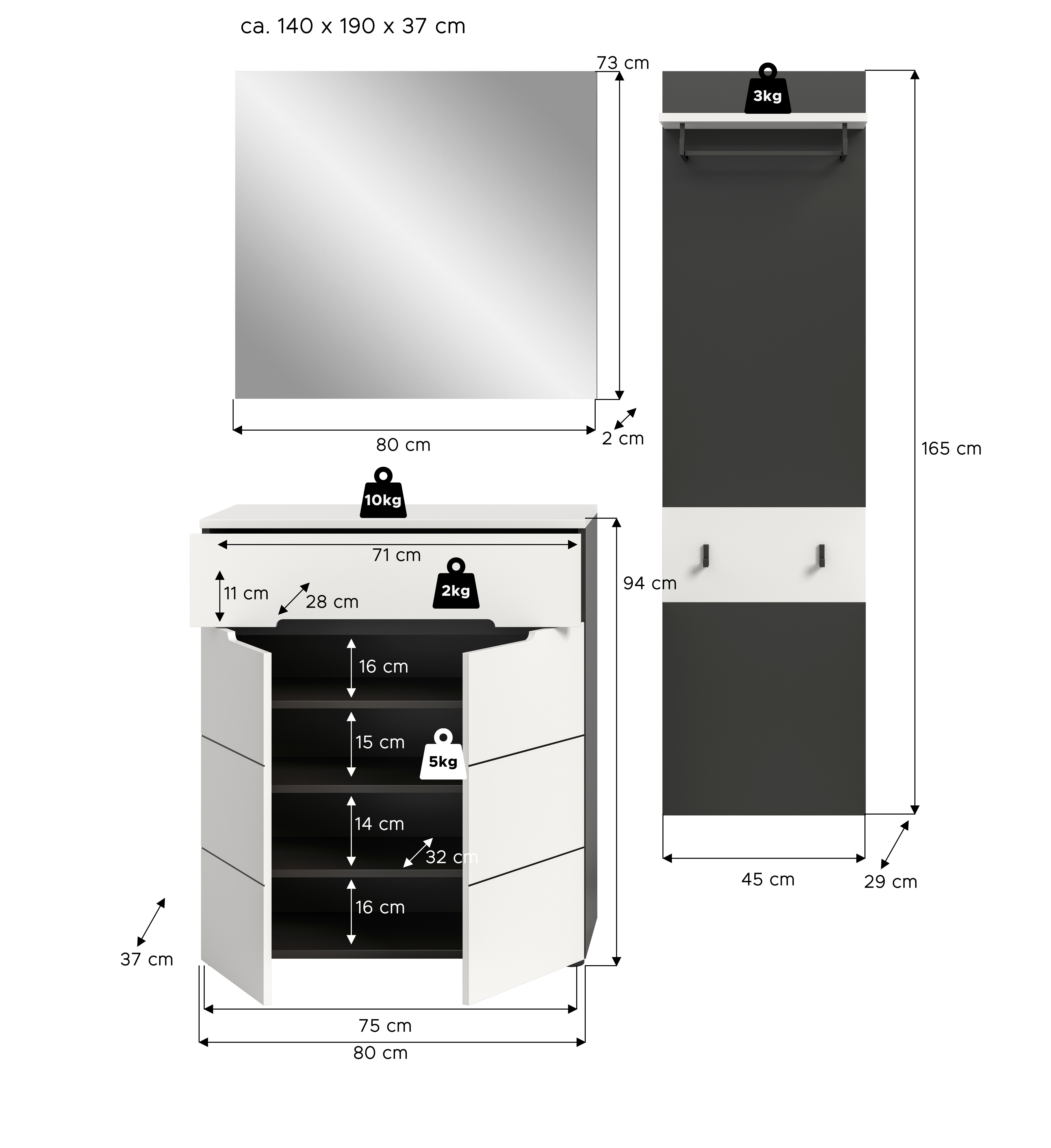 | Meuble à chaussures | 80 | 94 | 37 |