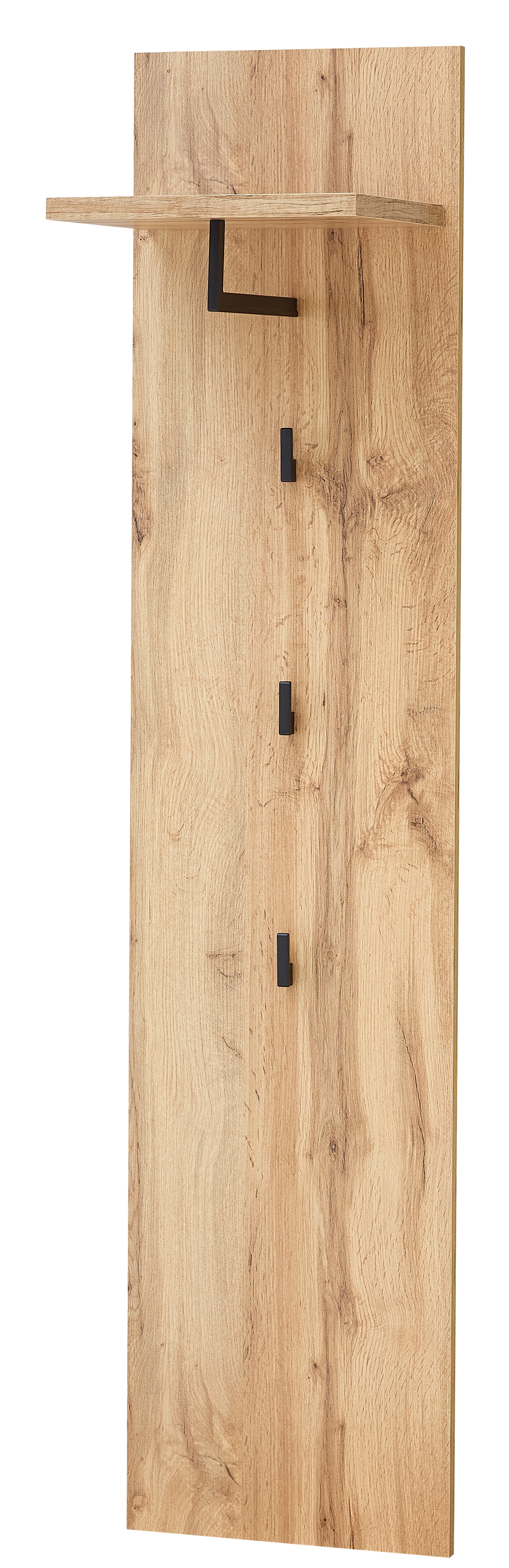 1 panneau mural portemanteau avec 1 tablette, 1 barre de penderie et 3 crochets à vêtements