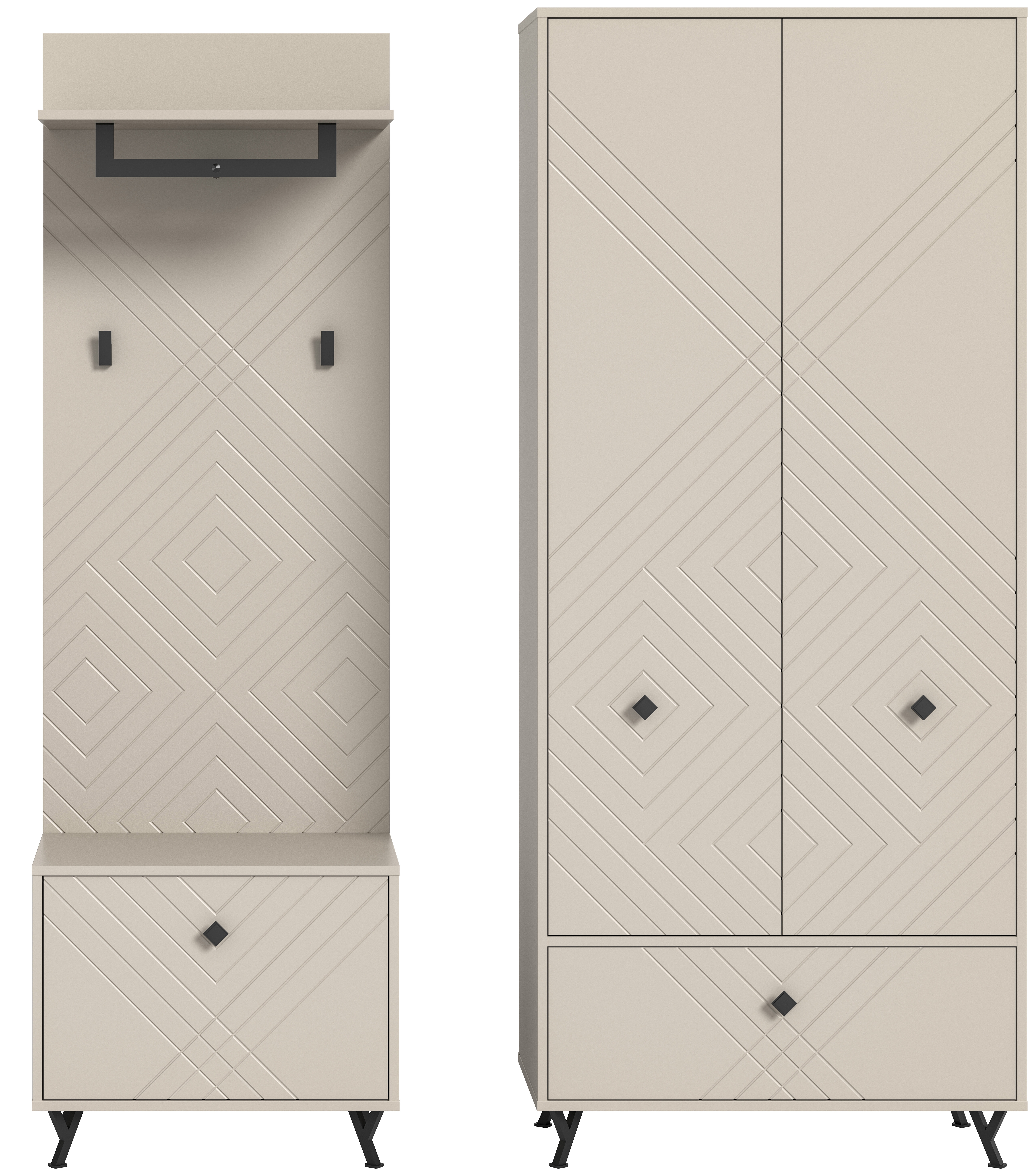 - Design/style : le vestiaire combiné séduit par son design moderne et intemporel avec revêtement mélaminé ton beige sable et surface thermoformée aspect mat. Les lignes claires et les teintes harmonieuses permettent d’embellir la pièce et de créer une ambiance cosy.