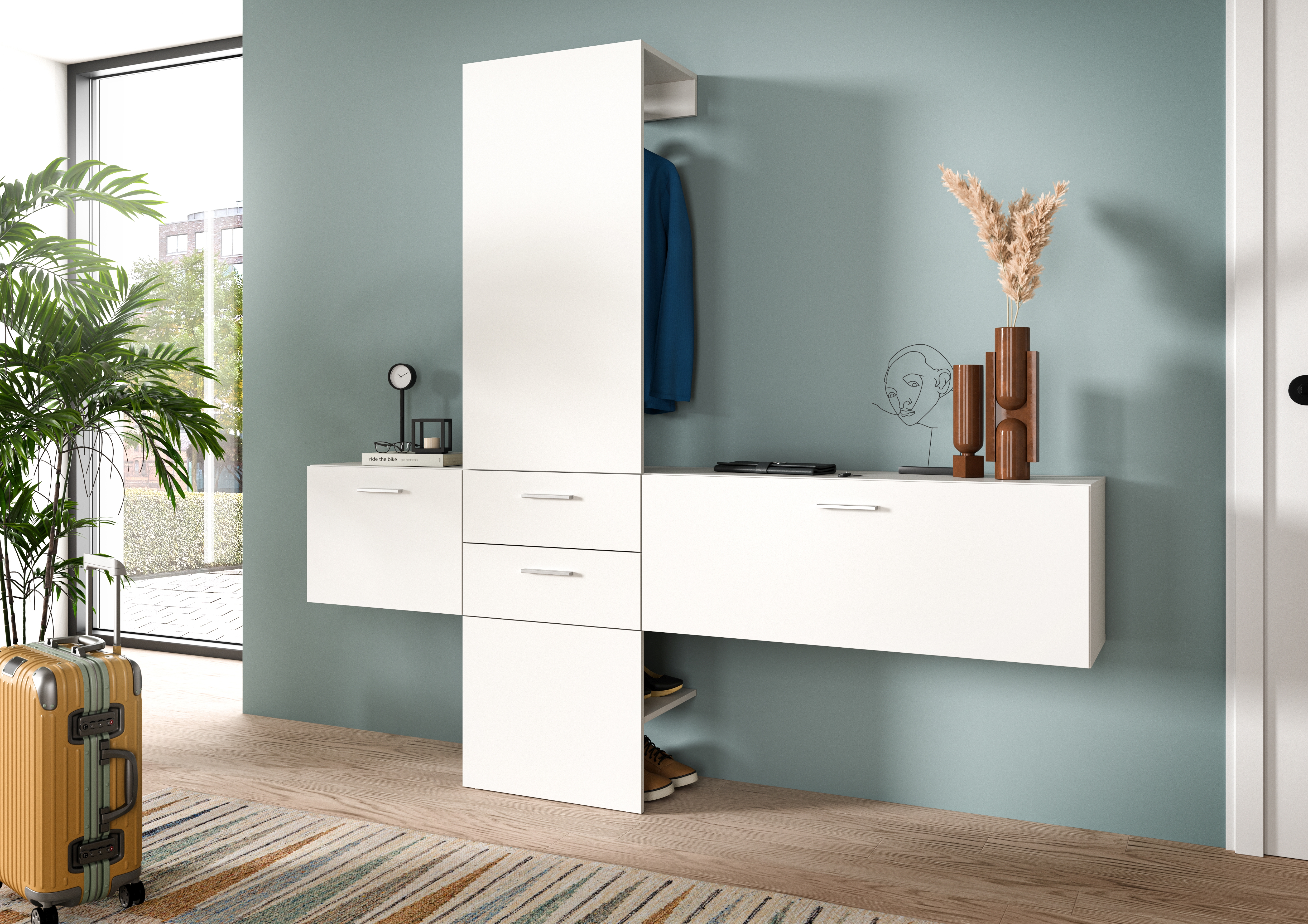 - Grâce au design peu encombrant sur seulement un côté, ce vestiaire est idéal pour les petits couloirs ou les entrées étroites.