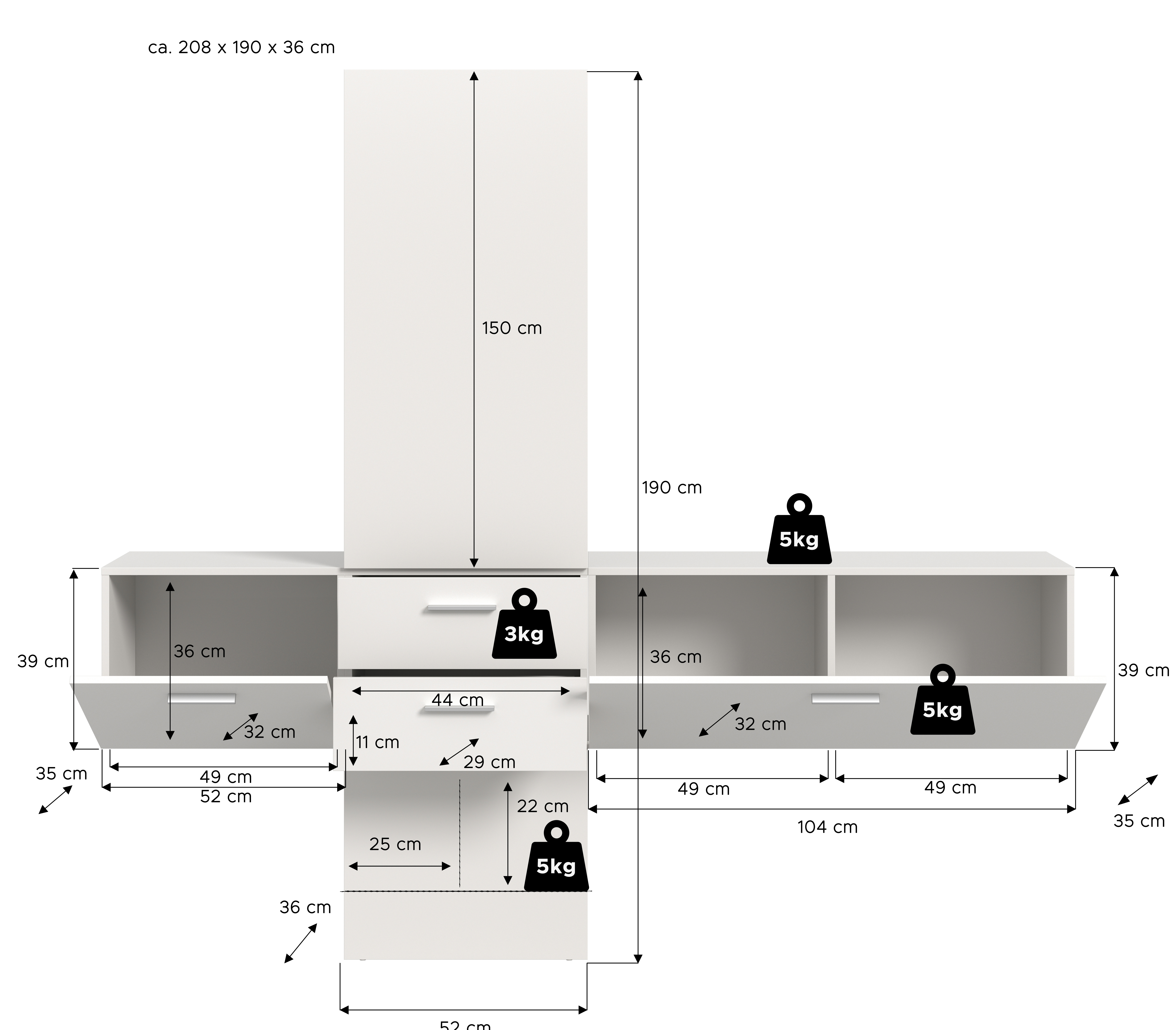 | Dimensions : | L/H/P env. 208/190/36 cm | ||