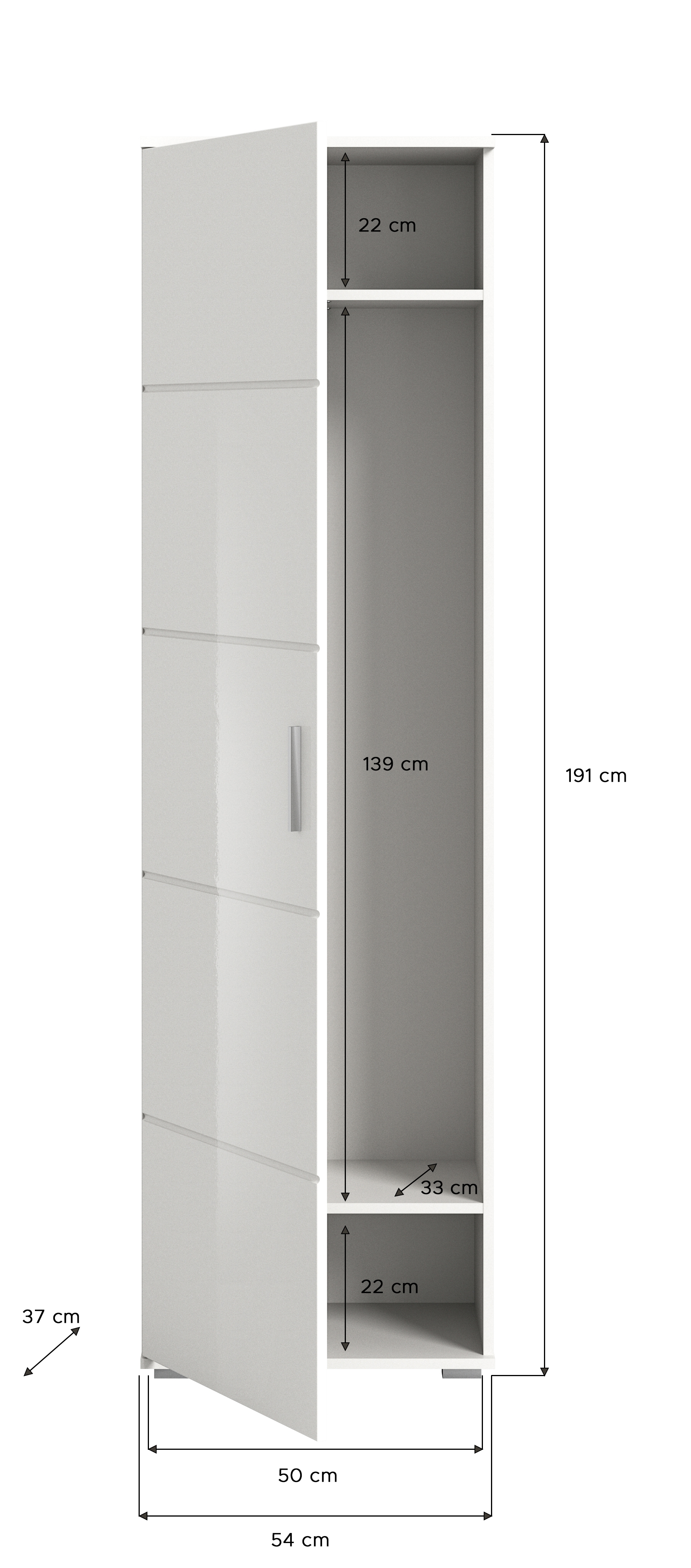 1 armoire d’entrée avec 1 porte, 1 tablette fixe, 1 barre de penderie et 1 tablette amovible