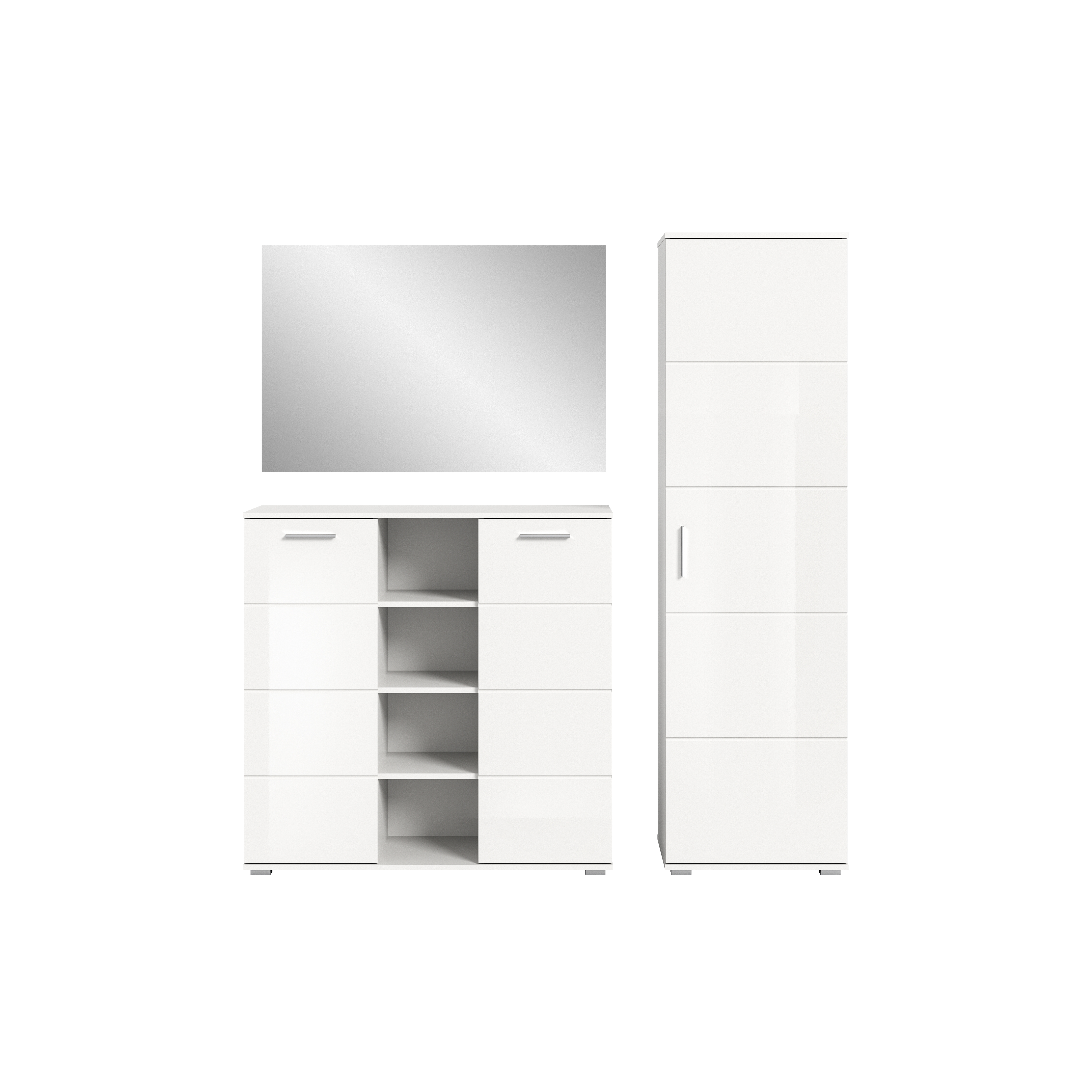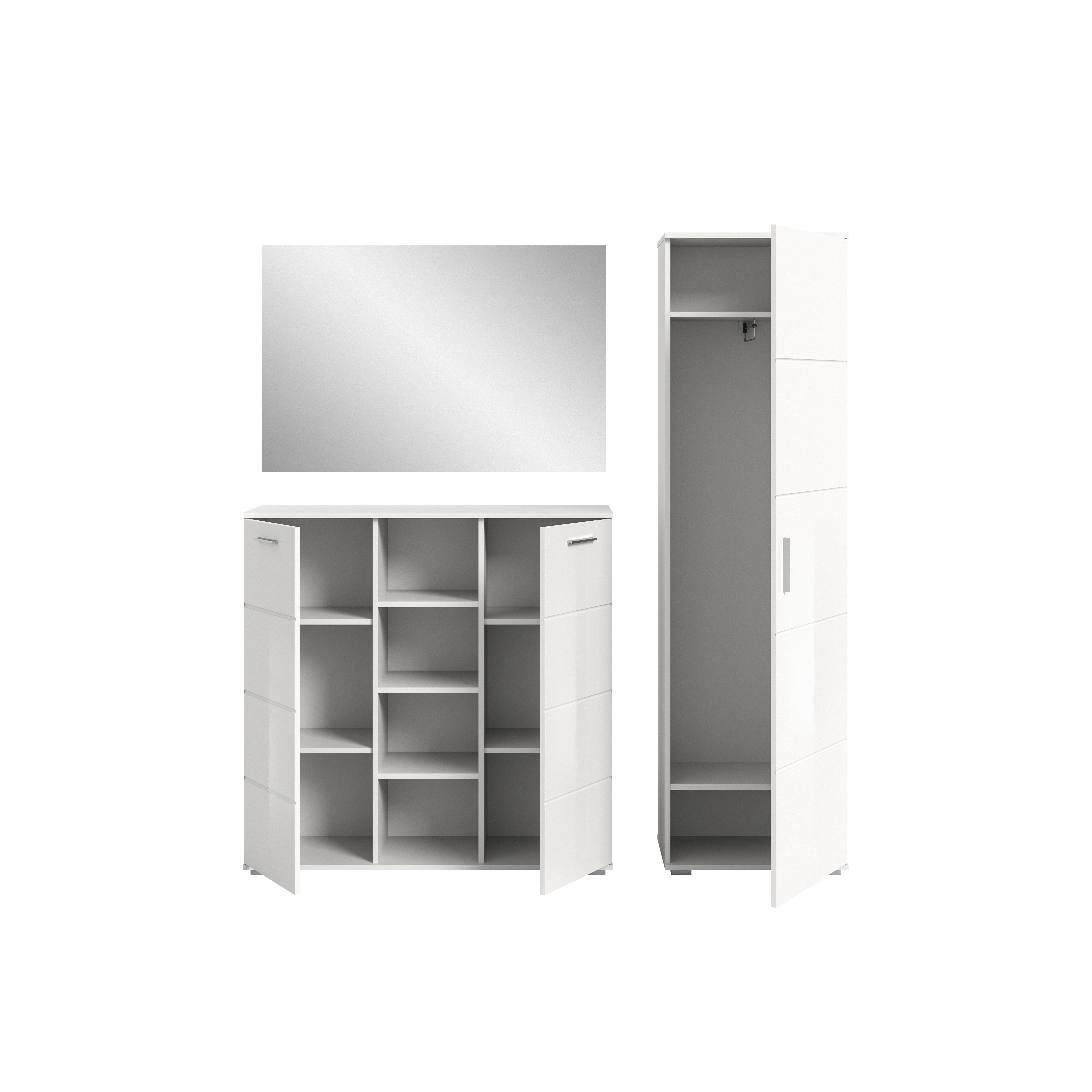 1 meuble à chaussures avec 4 casiers ouverts, 2 portes et 4 tablettes amovibles
