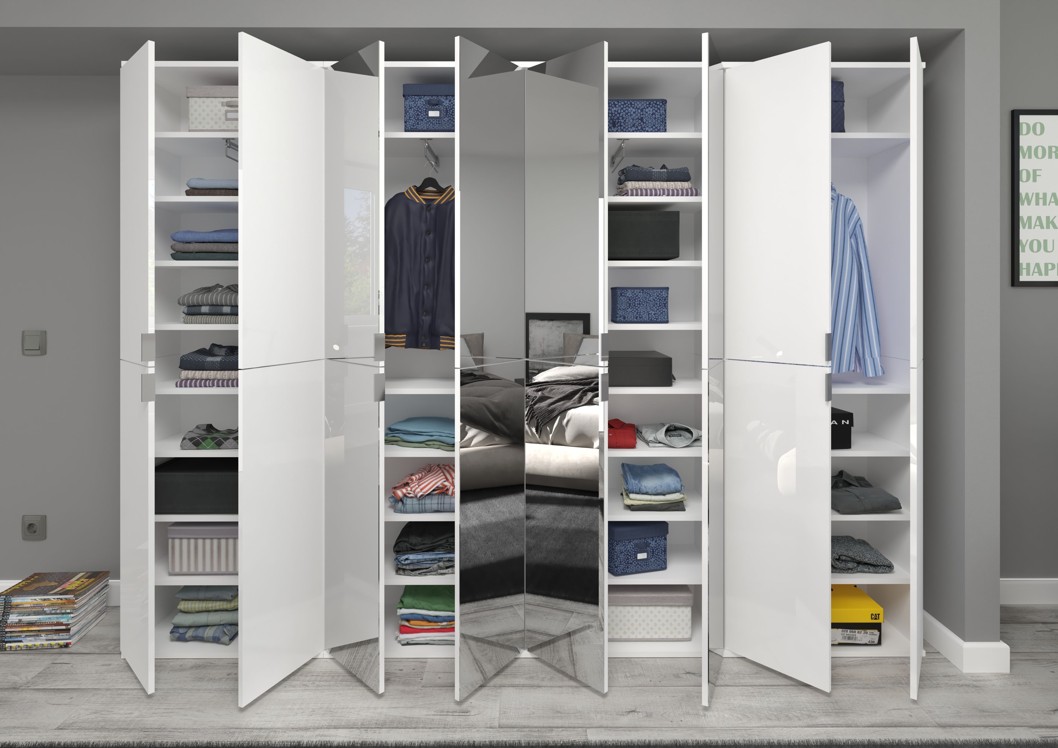 Optimisez votre entrée, couloir, buanderie, bureau ou chambre avec notre vestiaire combiné. Avec ses dimensions généreuses (244x193x34 cm) et son look élégant décor ton blanc et portes miroir, il conférera une ambiance claire et moderne à votre pièce. Adoptez ce meuble chic et pratique pour une organisation design et stylée.
