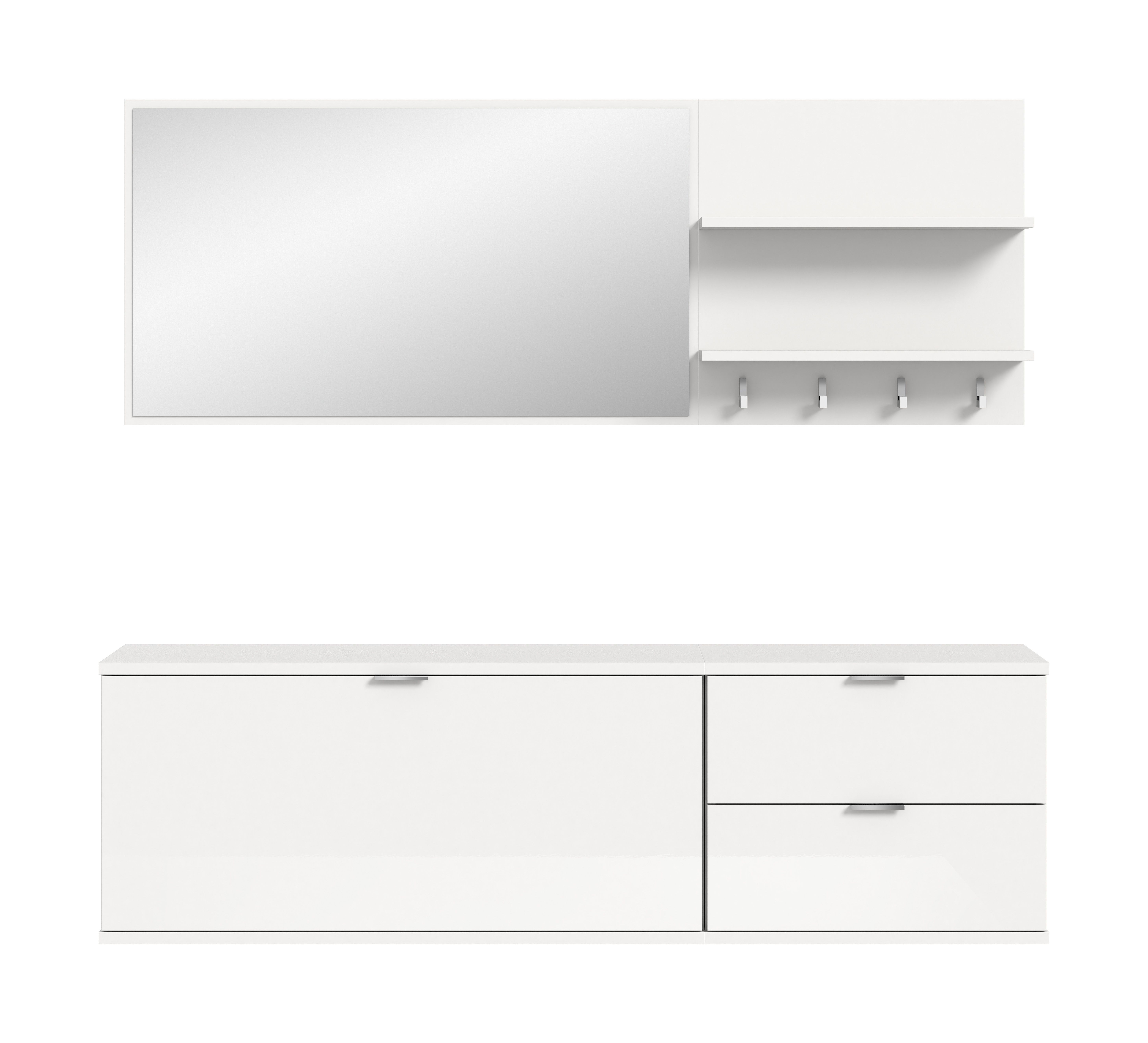 Apportez un vent de fraîcheur dans votre entrée avec notre élégant vestiaire combiné ton blanc ultra brillant éclatant. Avec ses dimensions généreuses (L 144 cm x H 191 cm x P 37 cm), ce set astucieusement conçu associe design moderne et solutions pratiques : une combinaison idéale pour les entrées de petite à moyenne taille. Il comprend un grand miroir qui agrandit visuellement l’espace tout en permettant de jeter un coup d’œil à sa tenue avant de sortir. Les deux bancs offrent une assise confortable pour se chausser et un rangement astucieux pour les chaussures et accessoires. Le panneau mural intégré avec crochets permet de garder vestes et sacs à portée de main tout en gardant votre entrée toujours bien rangée. Ce vestiaire combiné est parfait pour celles et ceux qui recherchent une solution à la fois esthétique et fonctionnelle. Transformez votre entrée en un lieu accueillant, organisé et élégant. Craquez pour ce vestiaire moderne et profitez d’un espace stylé qui fera sensation auprès de vos invités.