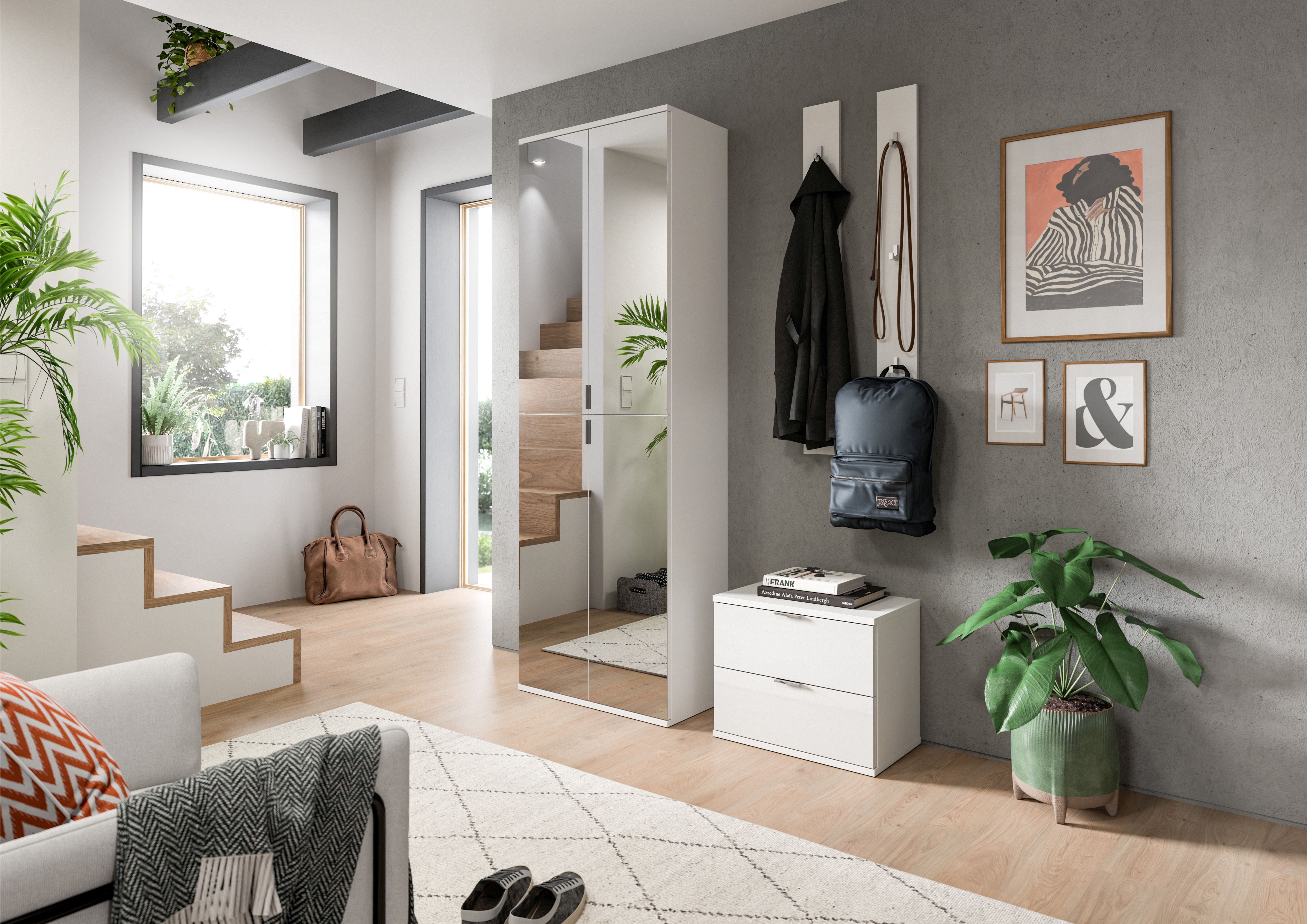 Apportez de l’ordre dans votre entrée avec notre vestiaire combiné ton blanc ultra brillant : la solution idéale grâce à ses dimensions compactes (L/H/P : 128x191x37 cm). Cet ensemble se compose d’un banc à tiroirs confortable, d’un lot de deux panneaux muraux pratiques et d’une armoire élégante avec façade miroir. Cette combinaison maximise l’espace de rangement tout en offrant une assise agréable pour se chausser en toute tranquillité. La finition ultra brillante apporte une touche de modernité et réfléchit la lumière pour créer une atmosphère lumineuse et accueillante.