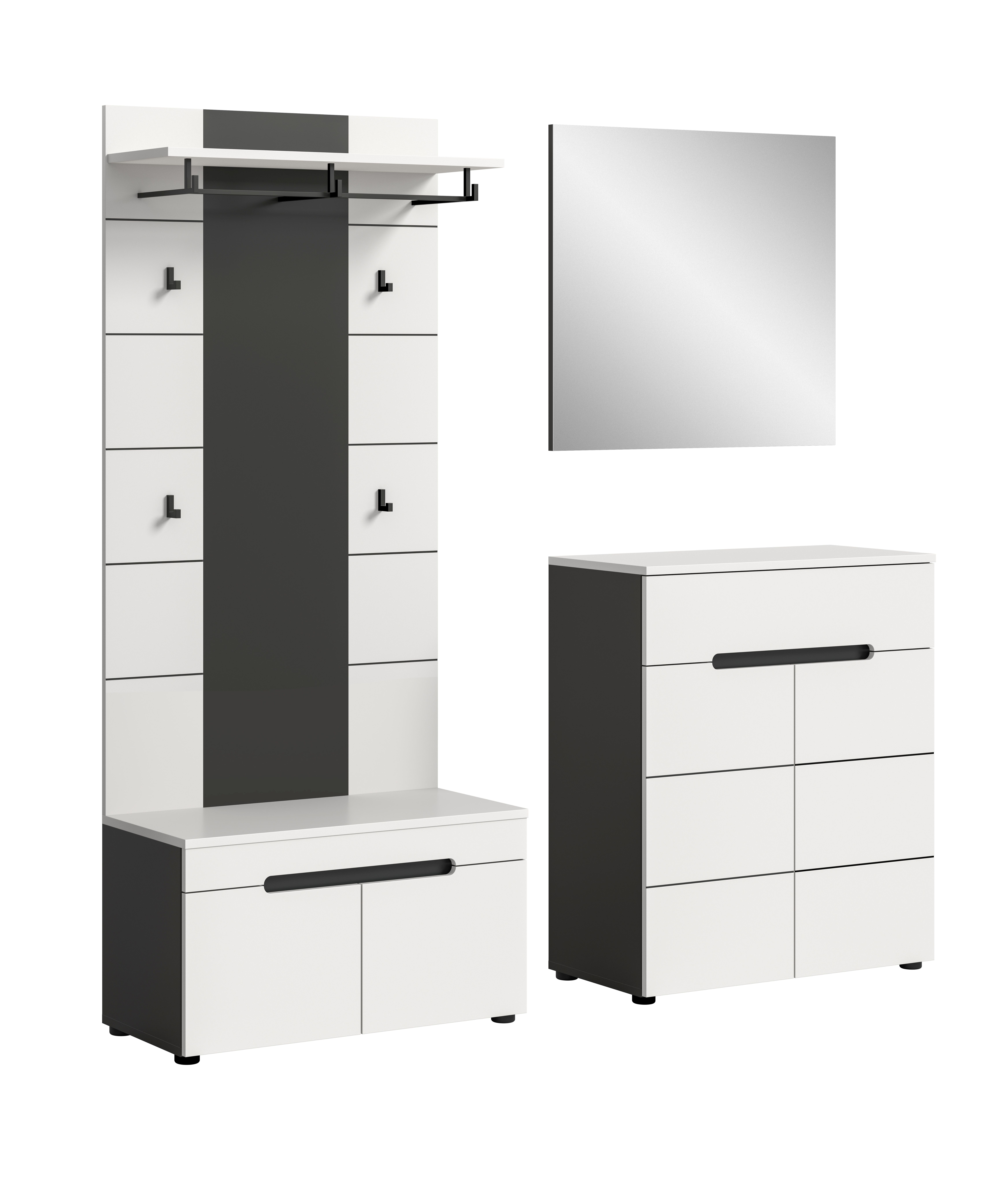Aménagez votre entrée avec ce vestiaire combiné élégant en décor gris basalte et blanc (dimensions : L/H/P : 175 x 190 x 37 cm) ! Cet ensemble comprend un banc à chaussures confortable, un panneau portemanteau pratique, un meuble à chaussures spacieux ainsi qu’un miroir. Vous disposerez ainsi de tout le nécessaire pour organiser au mieux votre entrée. Le design tendance de cet ensemble apportera lumière et convivialité à votre intérieur tout en offrant suffisamment de place pour tous vos accessoires. Profitez du confort de ce vestiaire combiné au style raffiné !