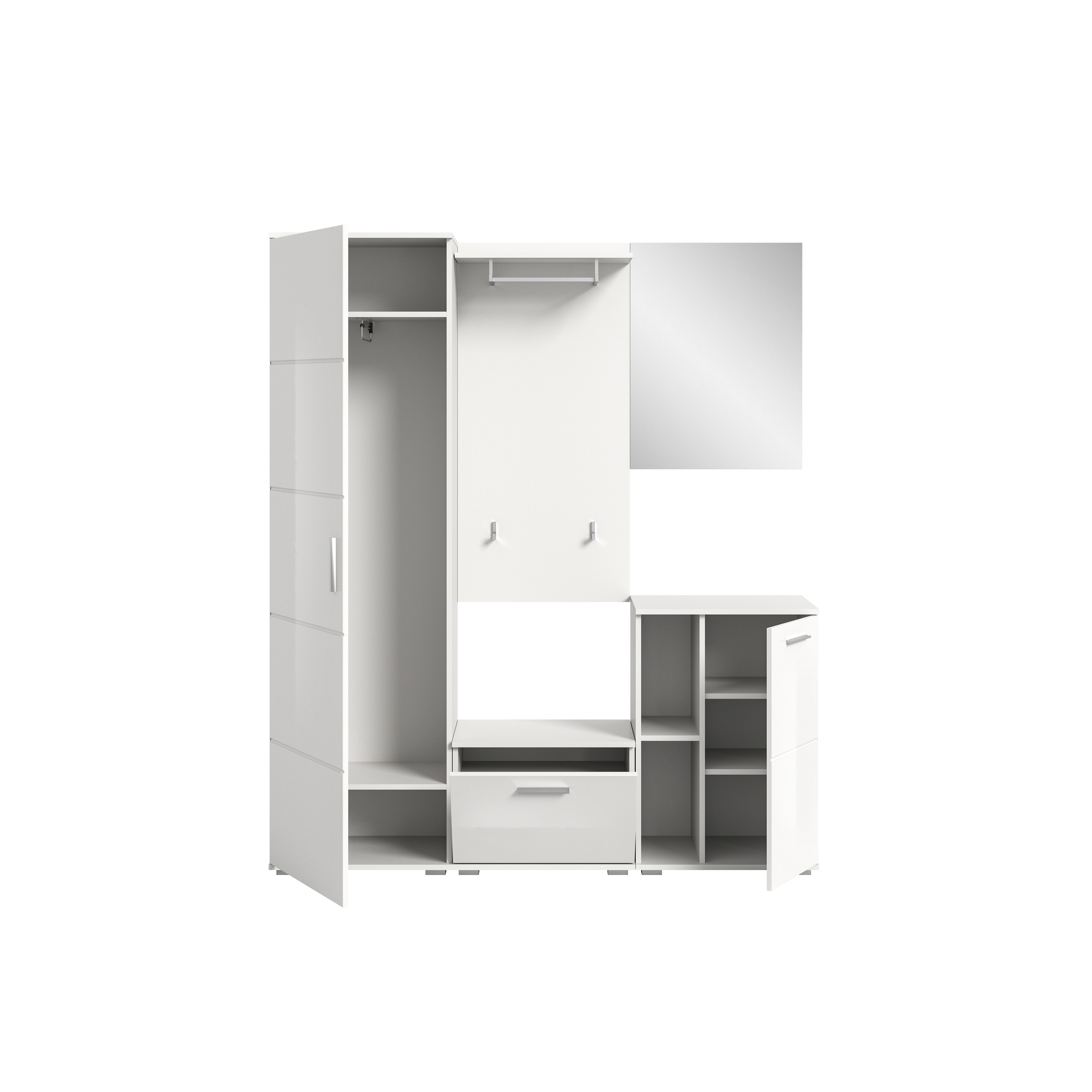 Agrandissez votre couloir ou votre entrée avec cet élégant vestiaire combiné ton blanc et ton blanc ultra brillant. Cet ensemble bien pensé avec un espace de rangement spacieux offre des possibilités de stockage pratiques et conférera à votre pièce une esthétique intemporelle. Découvrez dès maintenant ce meuble stylé et créez une entrée accueillante pour vos invités.