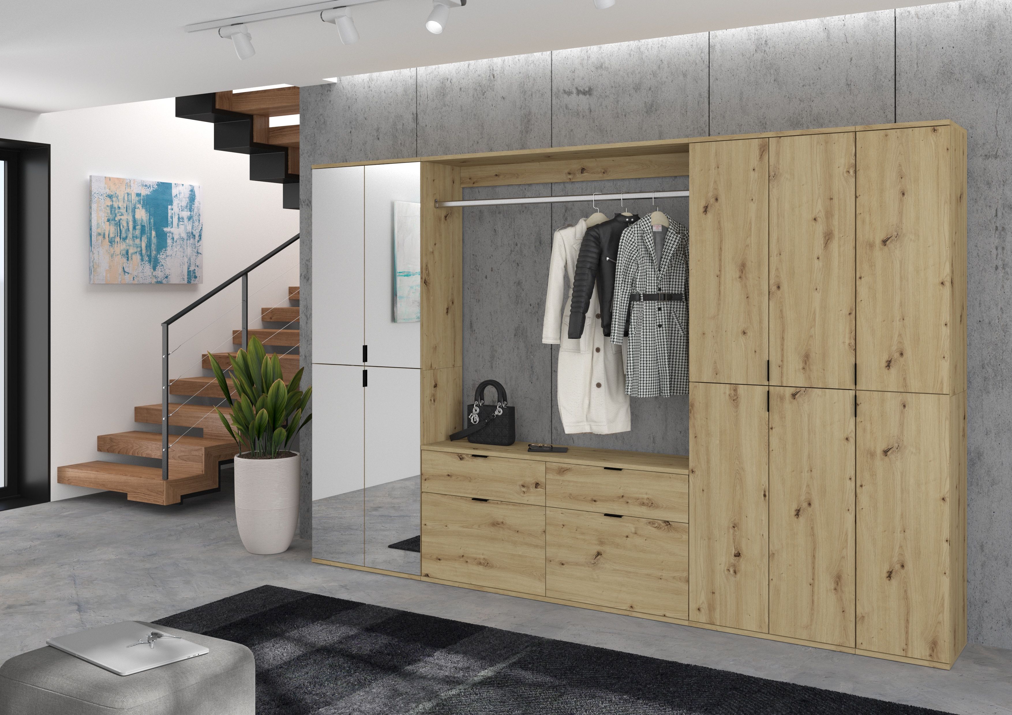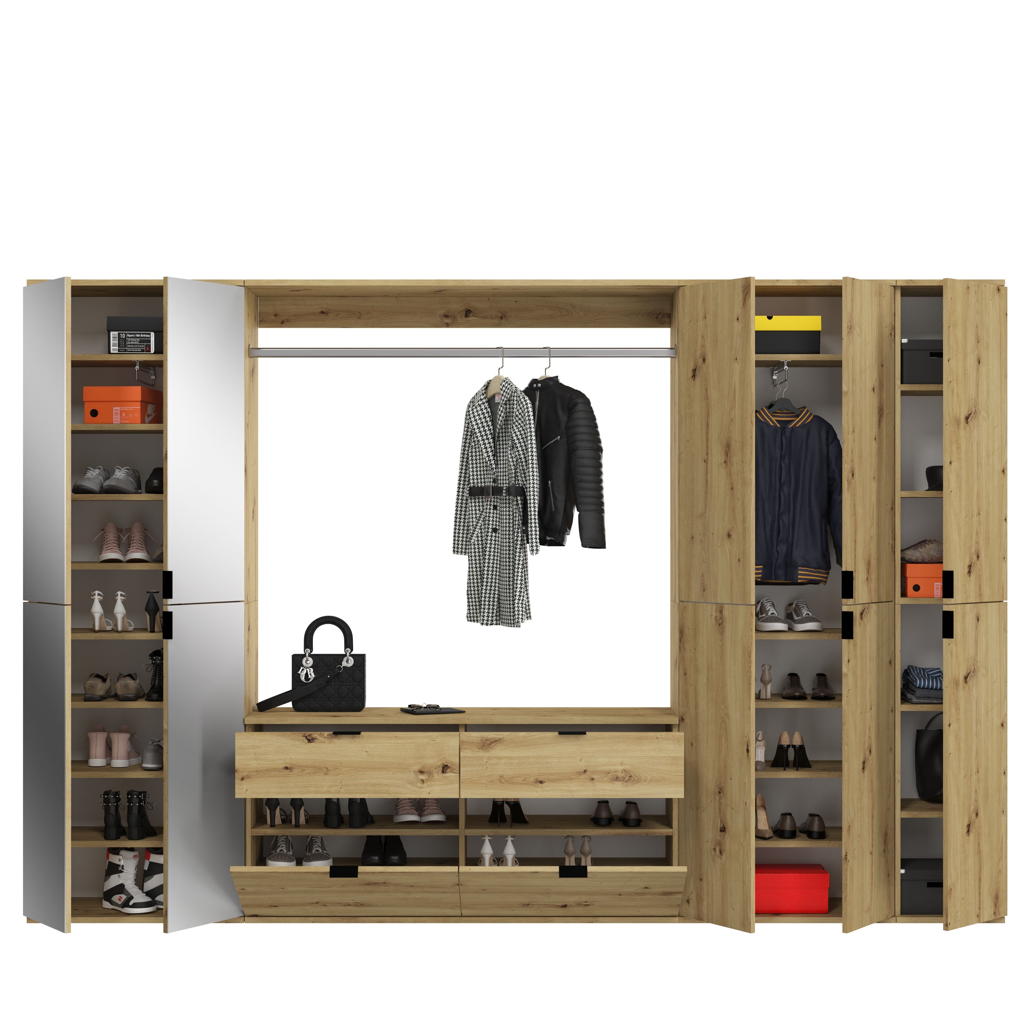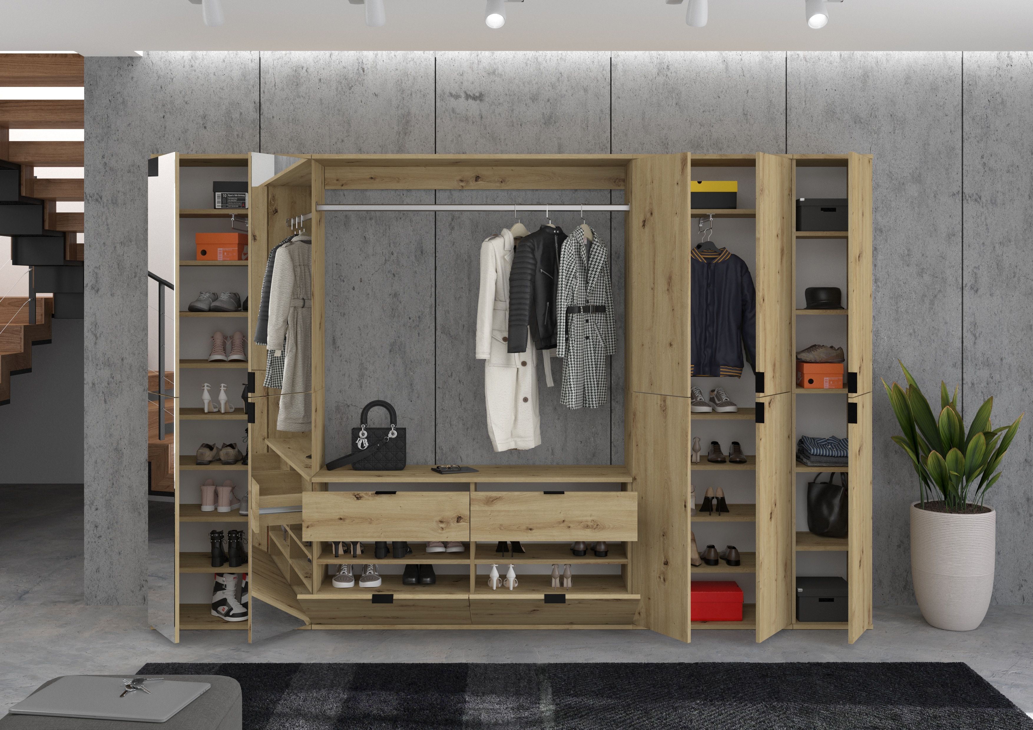 Optimisez votre entrée, couloir, buanderie, bureau ou chambre avec notre vestiaire combiné. Avec ses dimensions généreuses (273x193x34 cm) et son look élégant décor chêne Artisan et miroir, il conférera une ambiance claire et moderne à votre pièce. Adoptez ce meuble chic et pratique pour une organisation design et stylée.