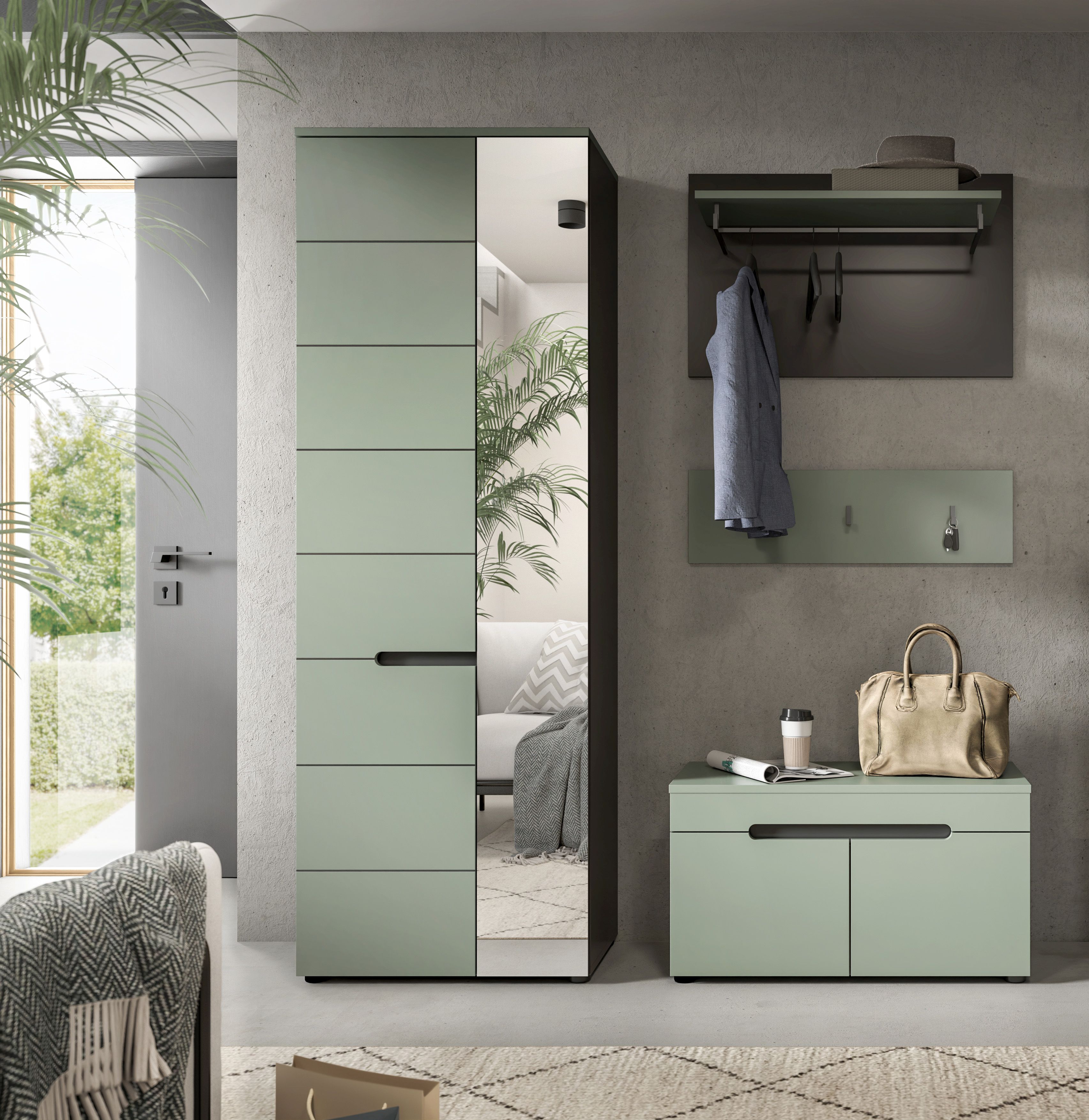 Notre ensemble de meubles d’entrée décor gris basalte et décor smoke green de qualité est une solution moderne et fonctionnelle pour votre entrée. Grâce aux différents éléments tels que l'armoire, le banc et le panneau mural portemanteau, vous pourrez créer une atmosphère organisée et accueillante. Découvrez dès maintenant cet ensemble polyvalent et esthétique pour une entrée toujours bien rangée.