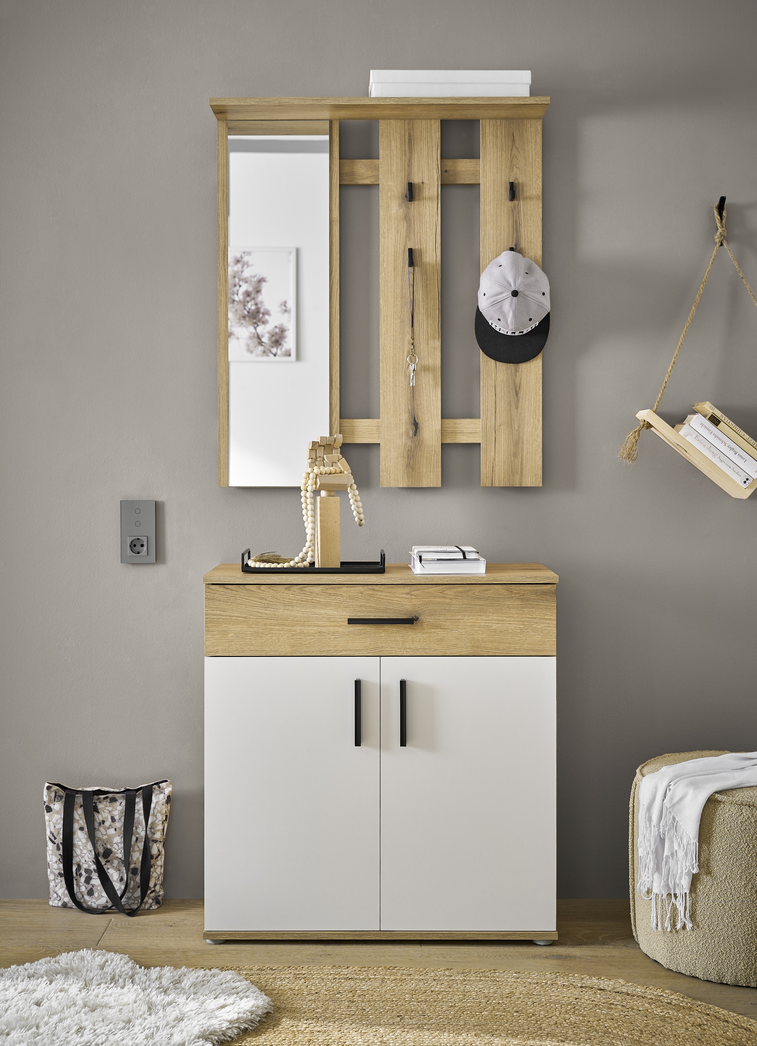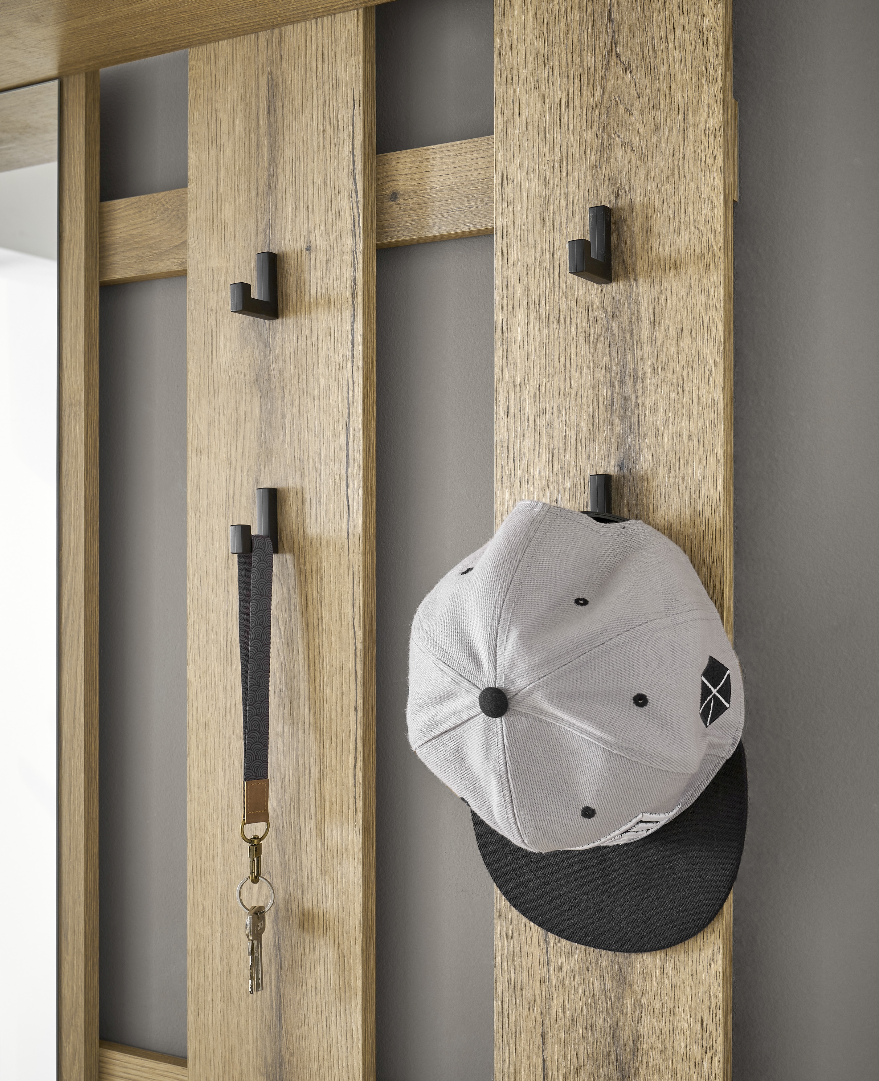 1 panneau portemanteau avec 1 miroir et 4 crochets à vêtements