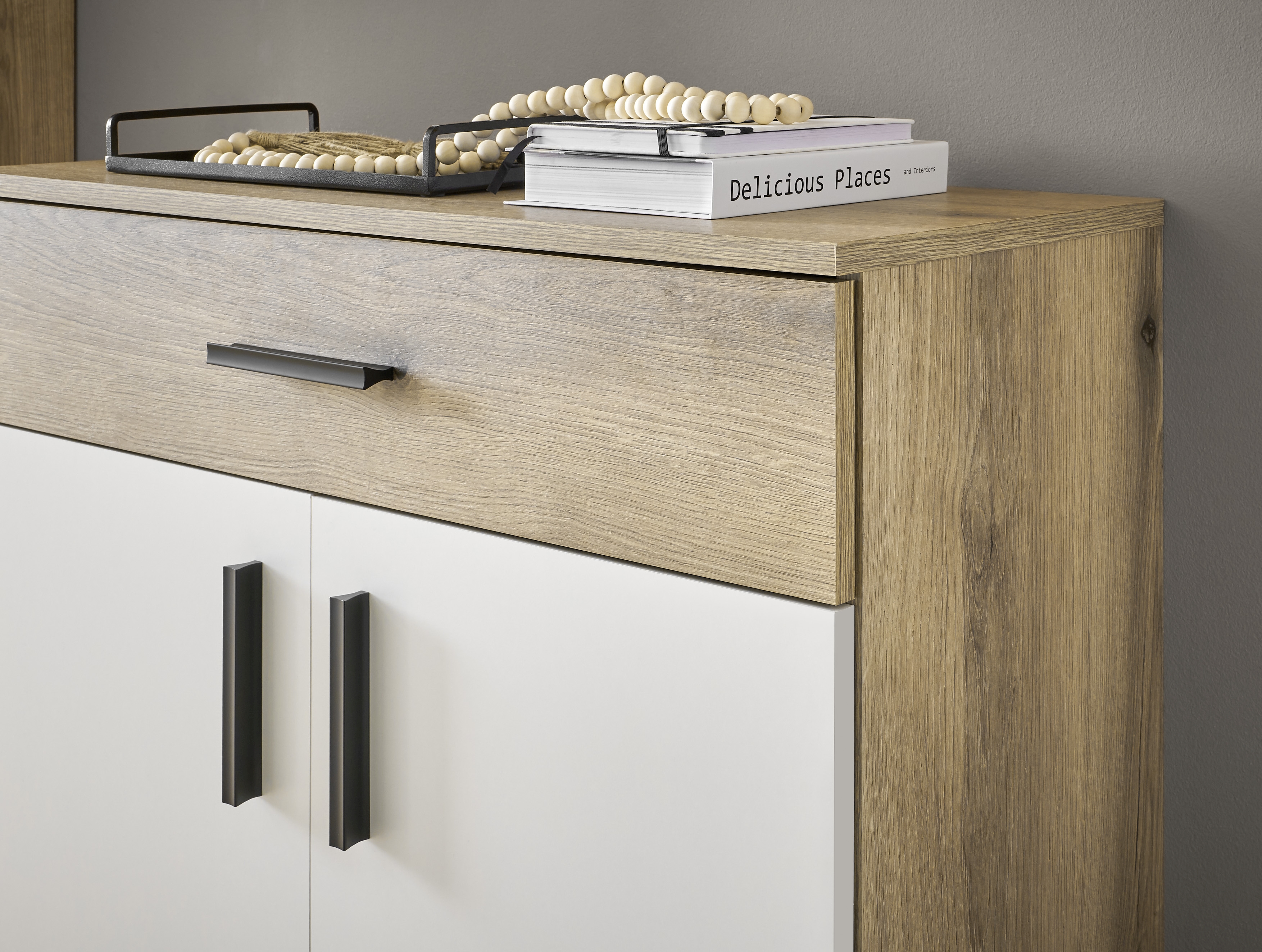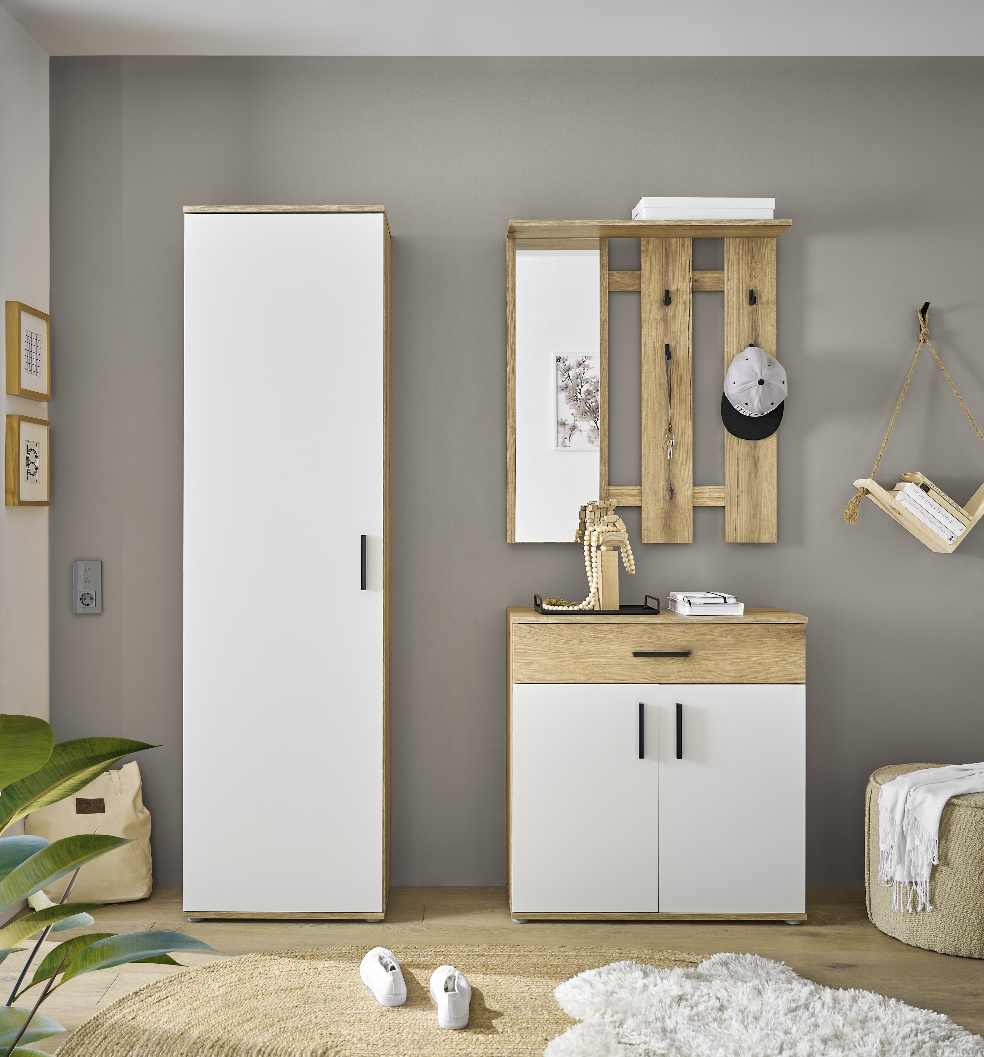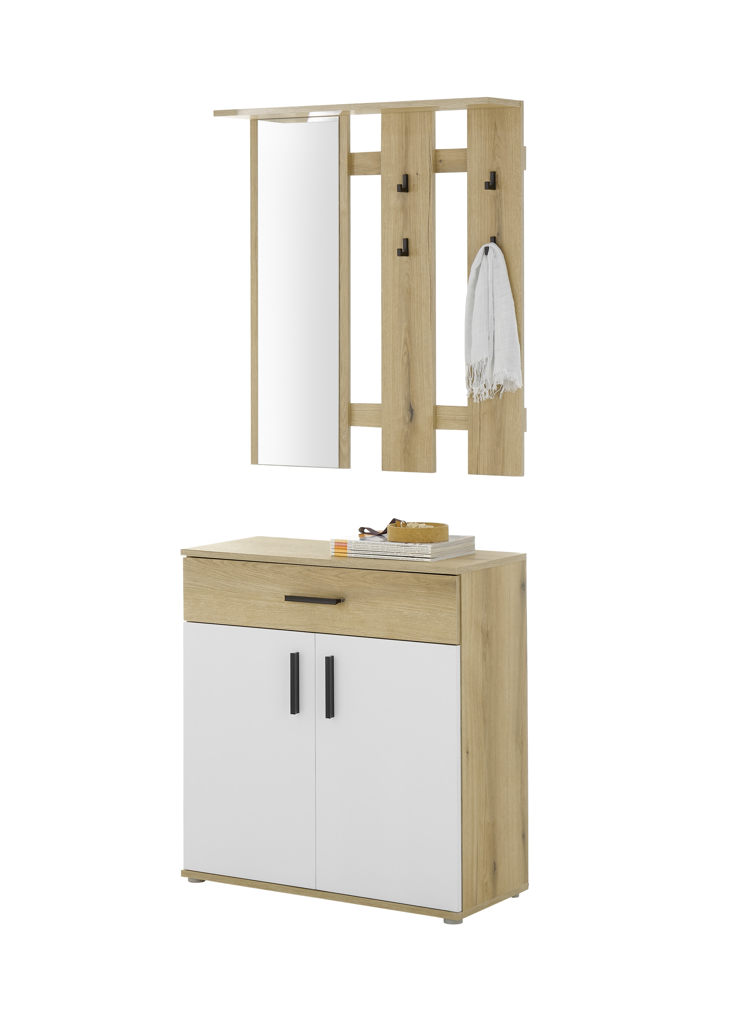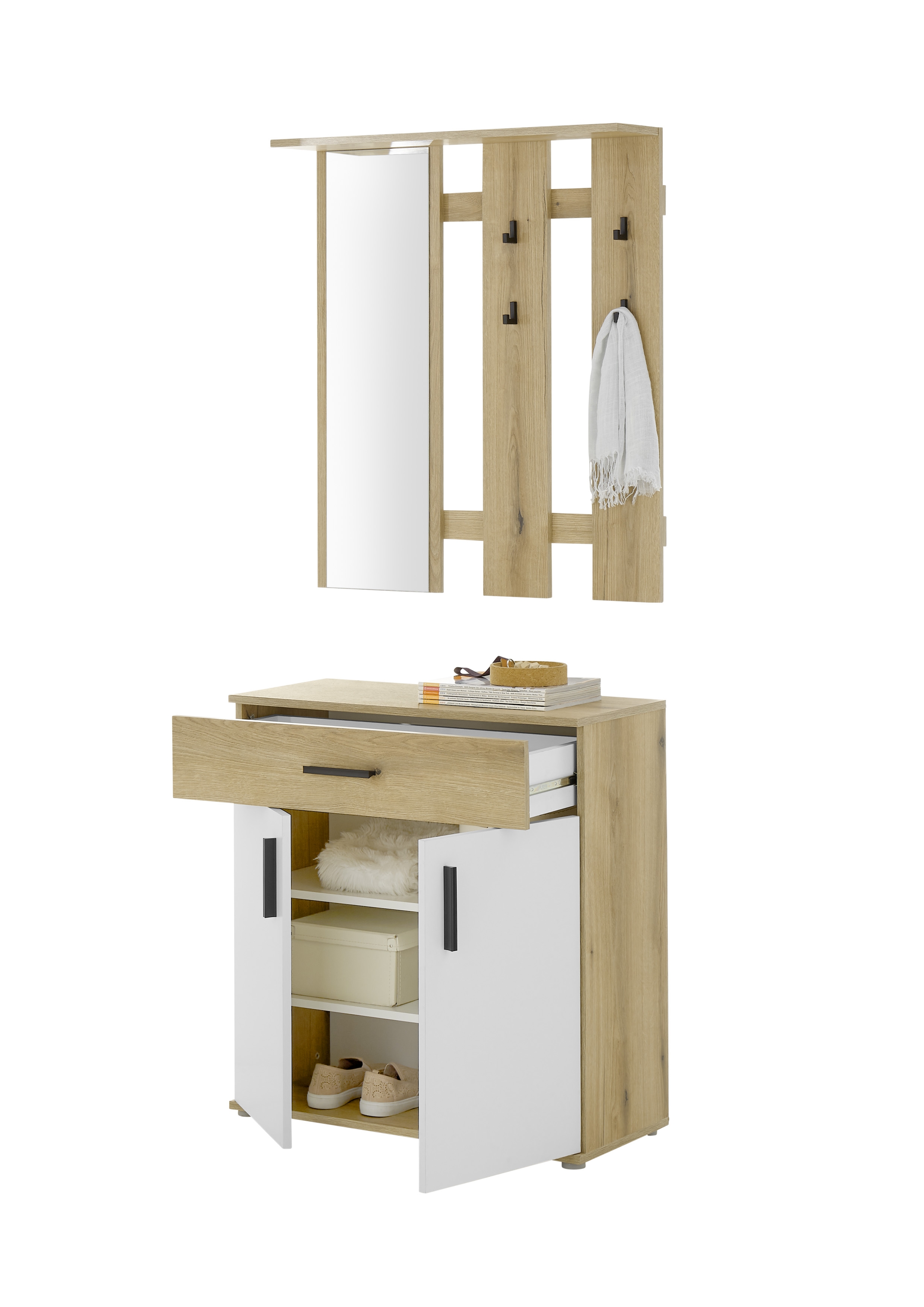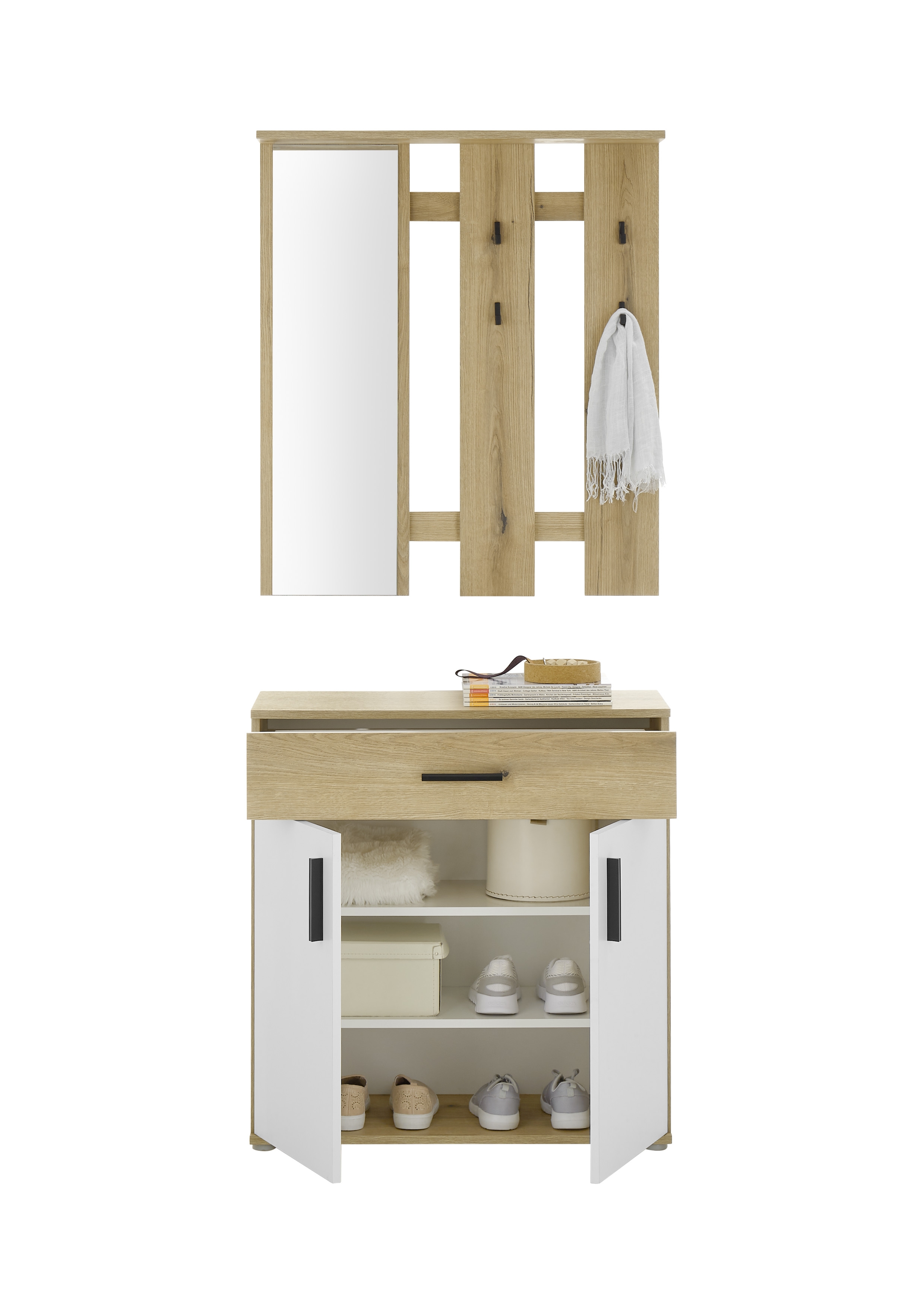 1 meuble à chaussures avec 2 portes, 1 tiroir avec coulisses à billes et 2 tablettes amovibles