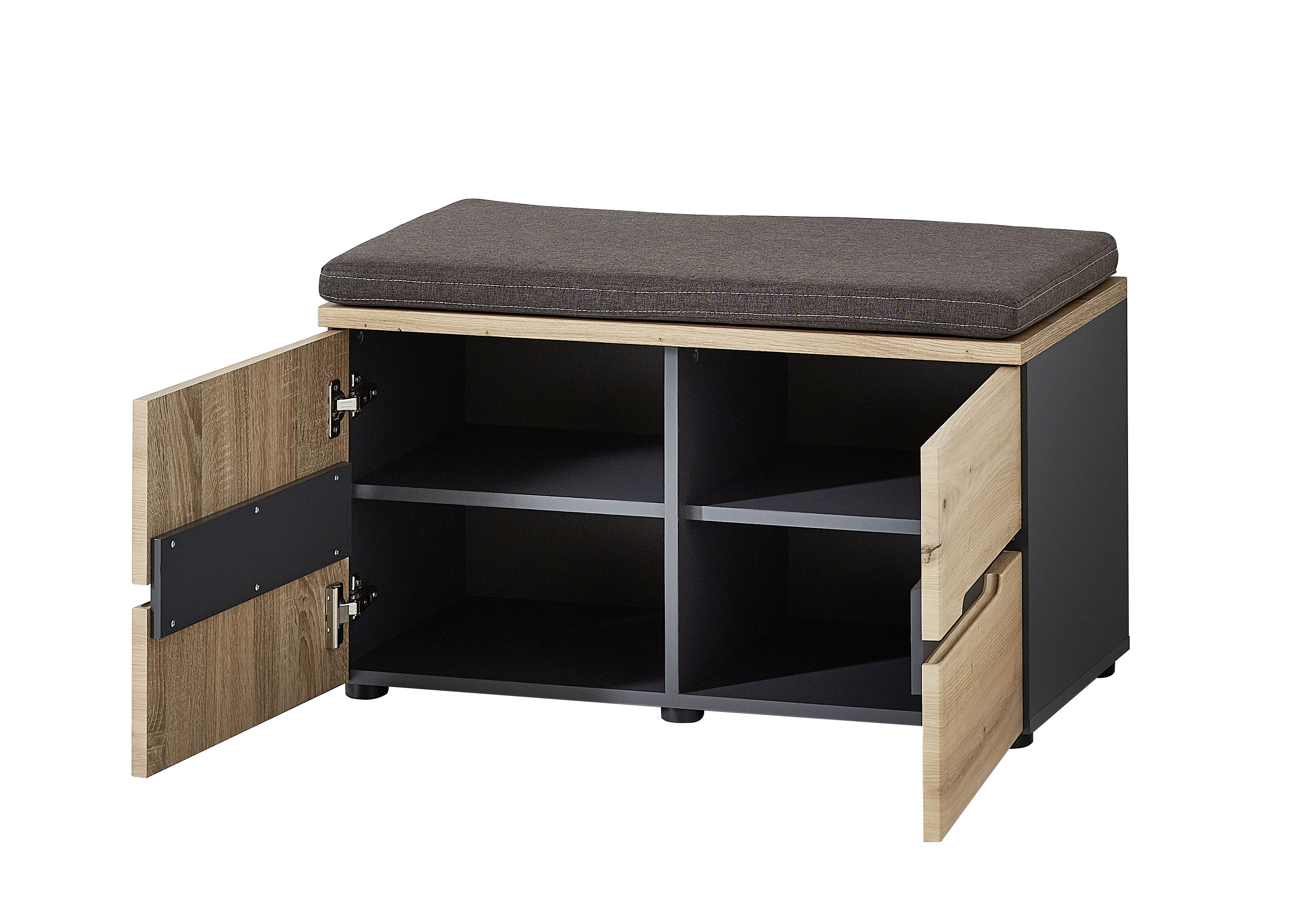 1 banc à chaussures avec 2 portes, 2 tablettes amovibles et 1 coussin d'assise