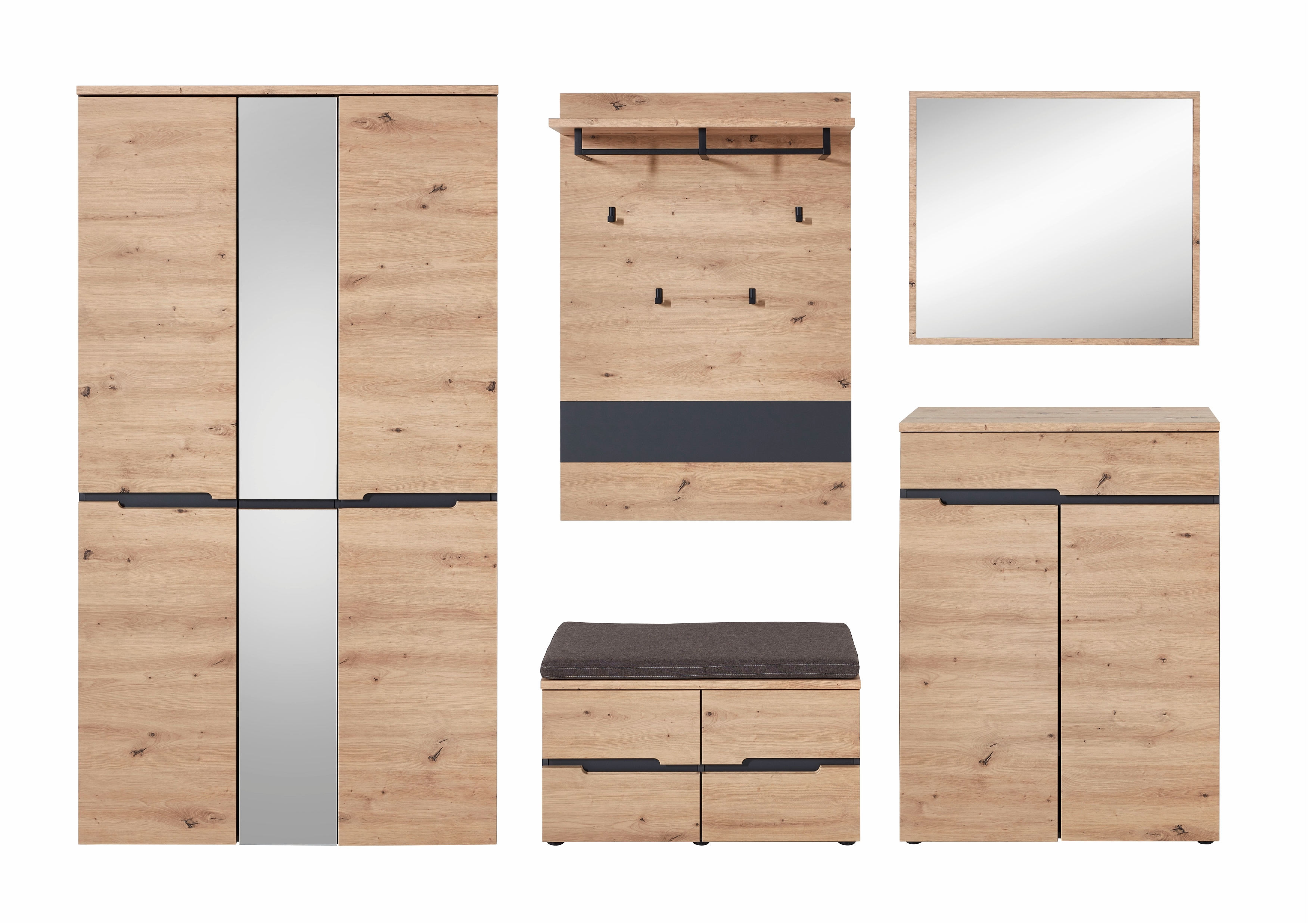 Façade : MDF décor chêne Artisan et contrastes ton graphite / miroir