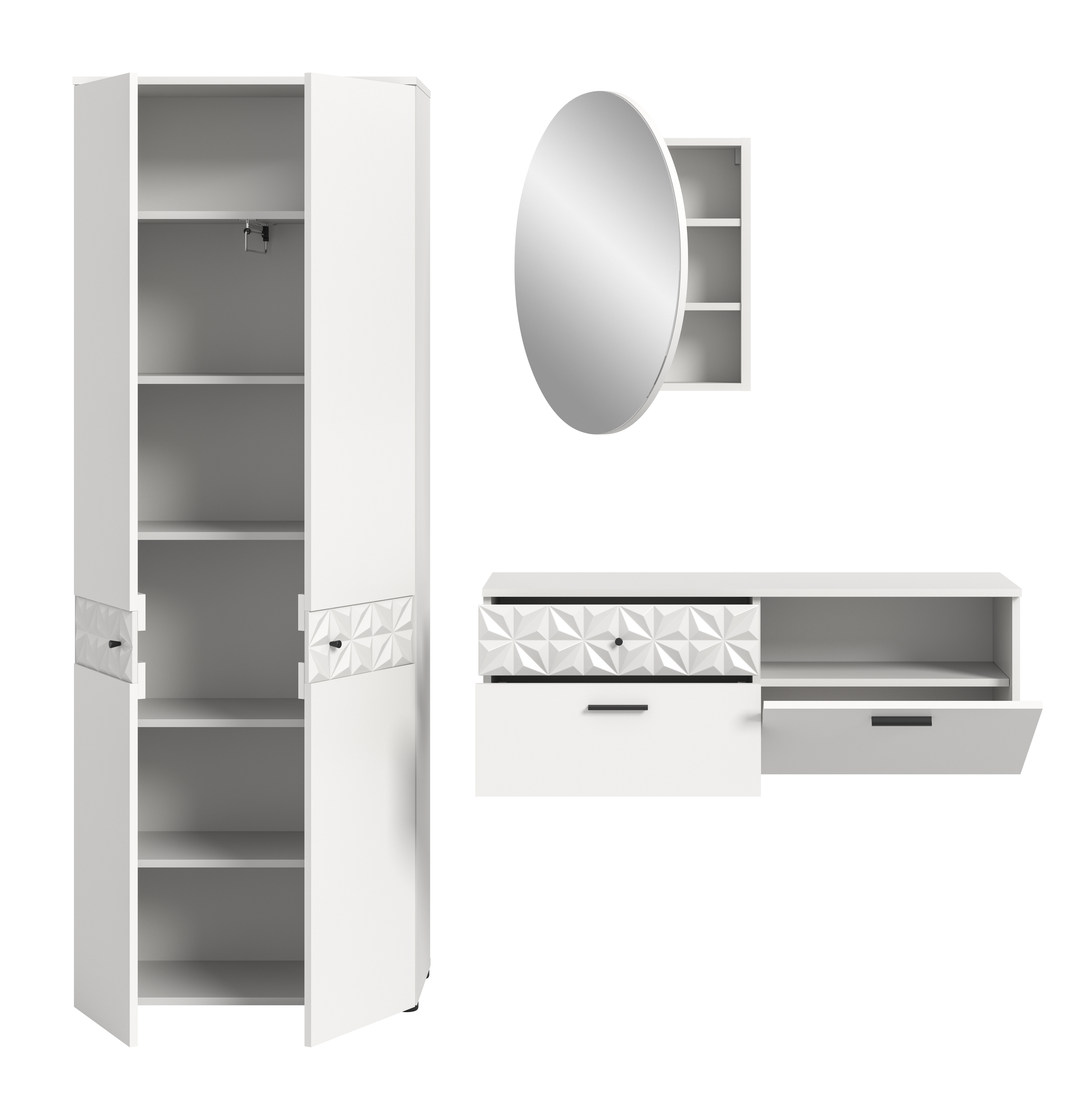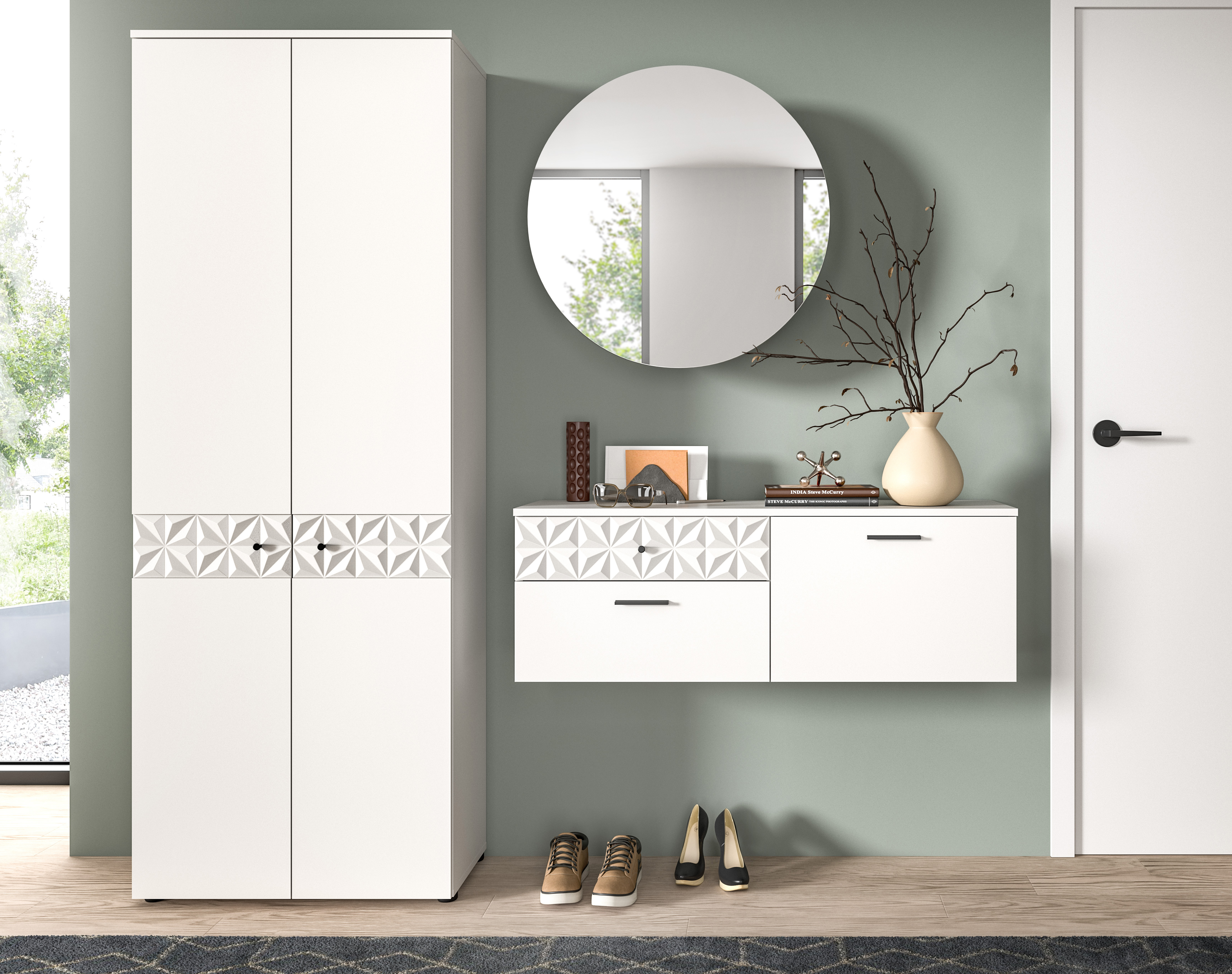 • Design/style : ce vestiaire combiné décor blanc et finition blanc ultra brillant séduit par son apparence moderne et élégante. L’aspect rainuré de qualité apporte une touche de raffinement supplémentaire à l’ensemble.