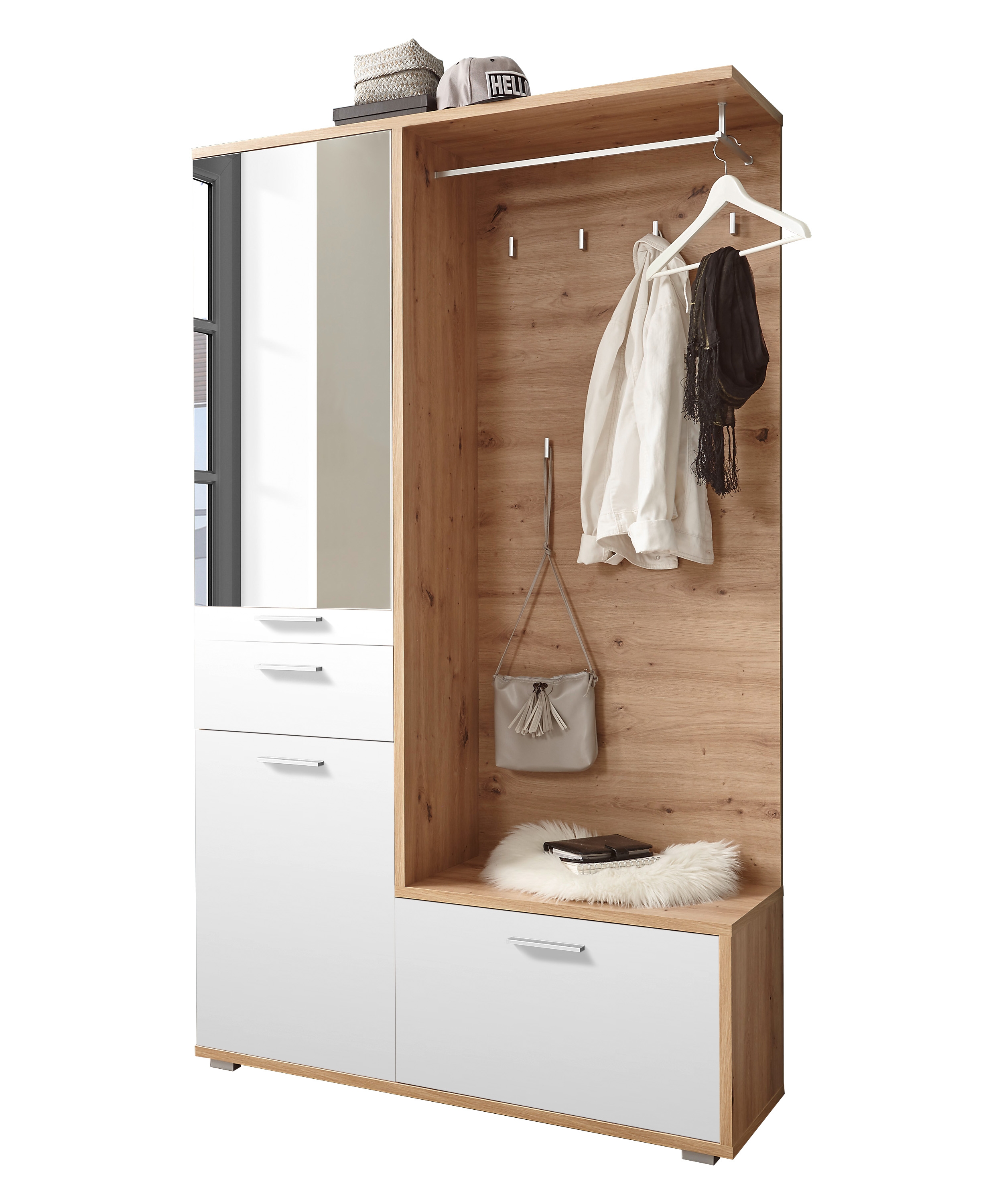 1 panneau portemanteau avec 1 barre de penderie et 7 crochets à vêtements