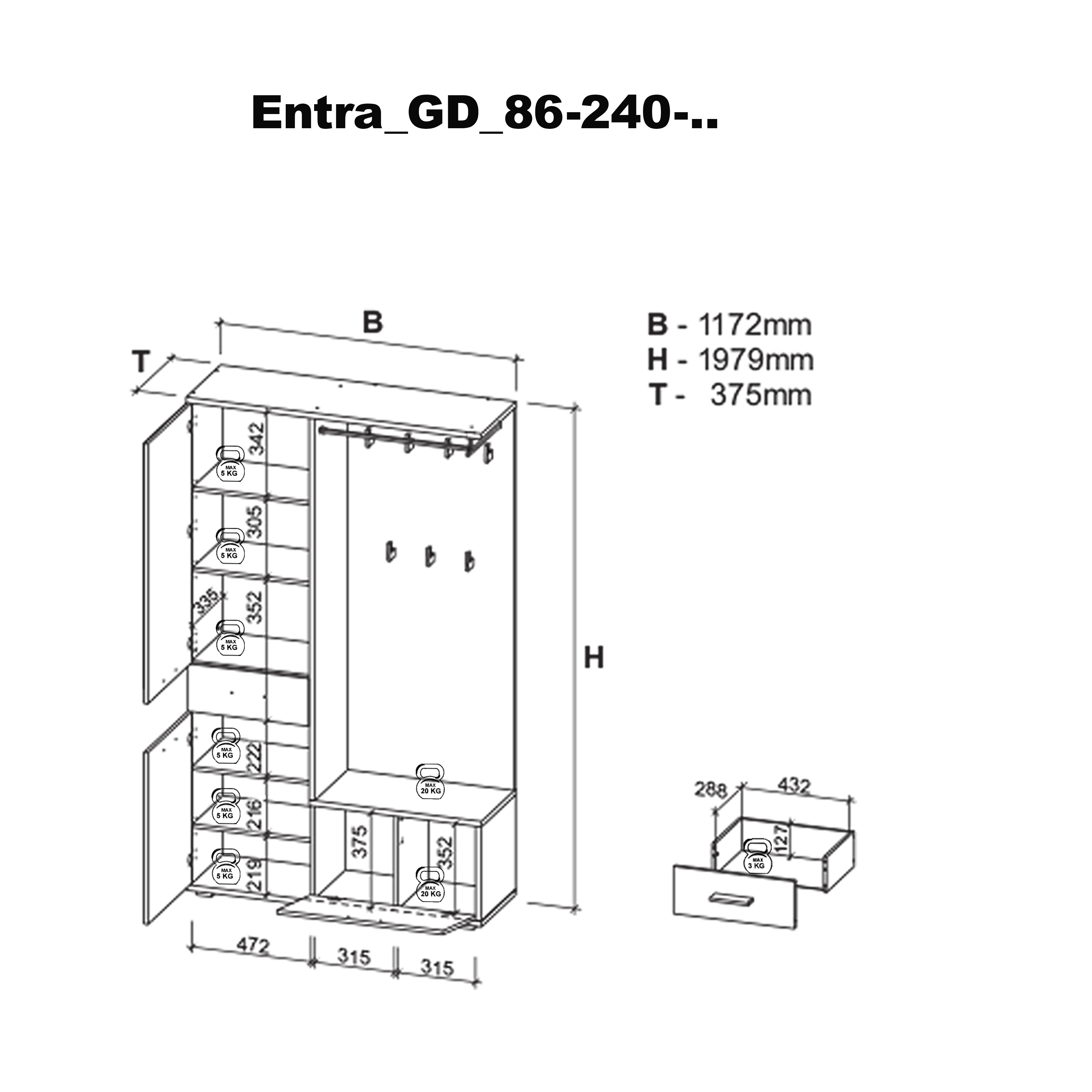 | Dimensions : | L/H/P env. 117/198/38 cm | ||
