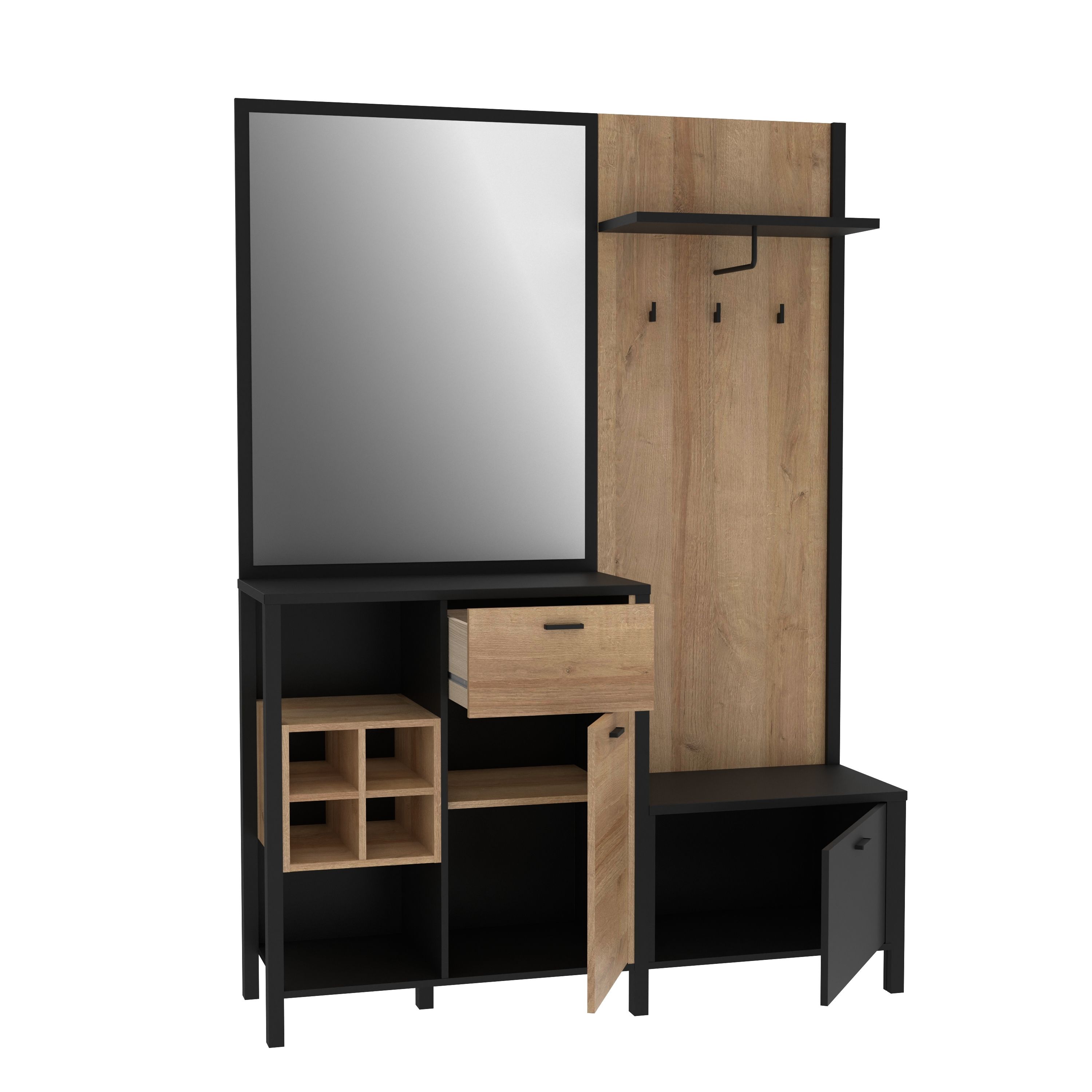 1 élément avec 2 grands et 4 petits casiers ouverts, 1 tiroir et 1 porte