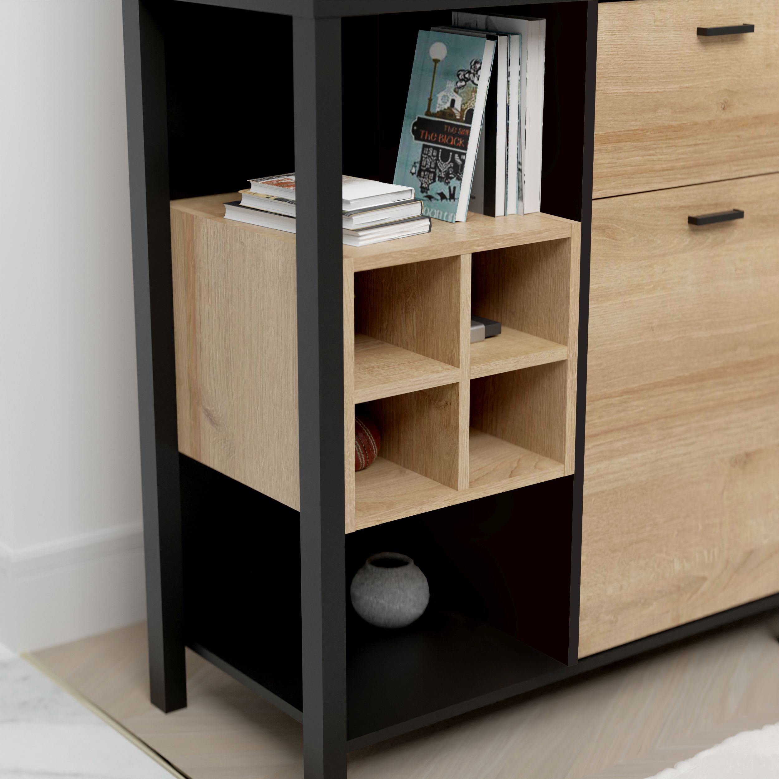 décor chêne Riviera et contrastes ton noir