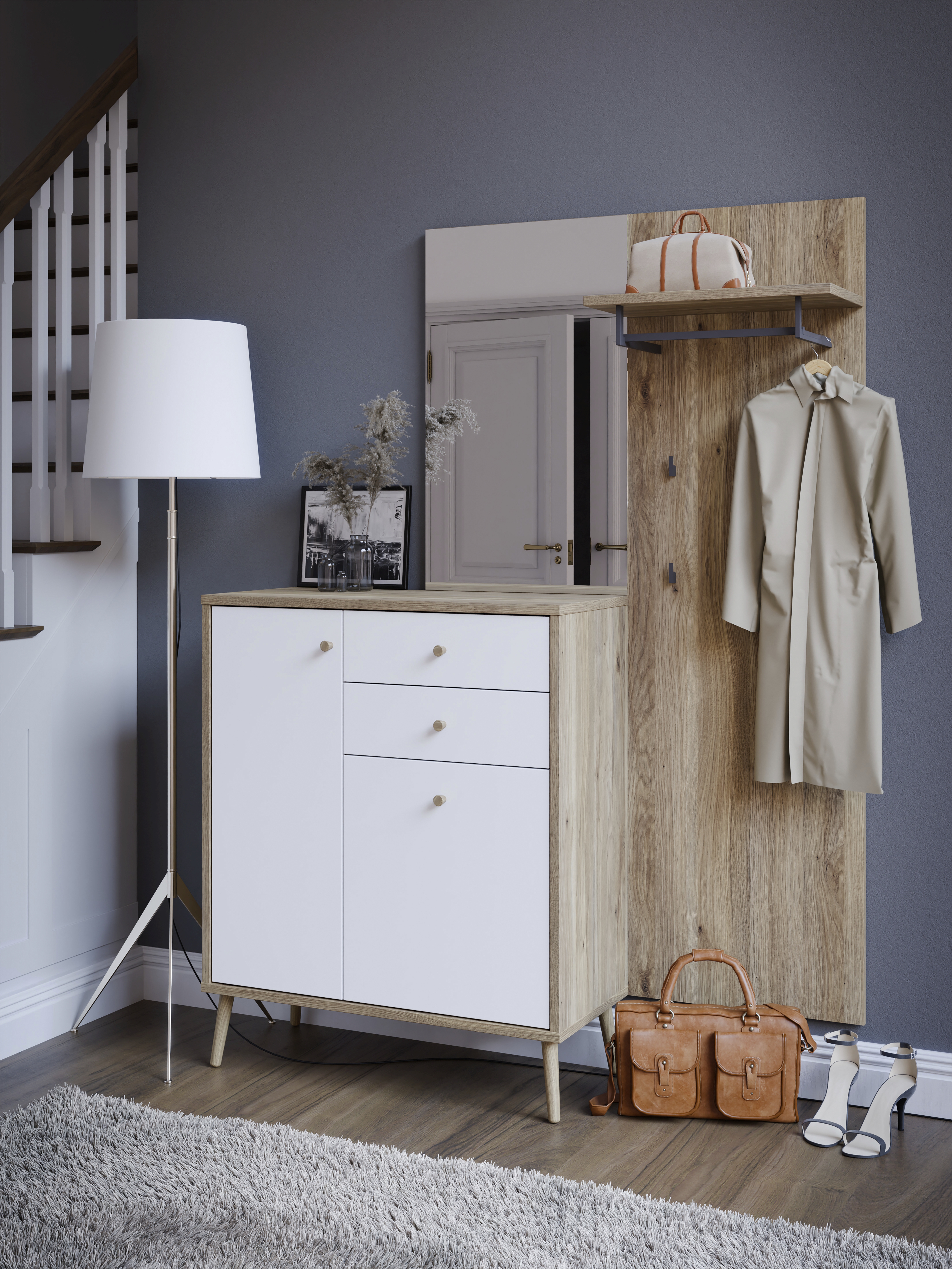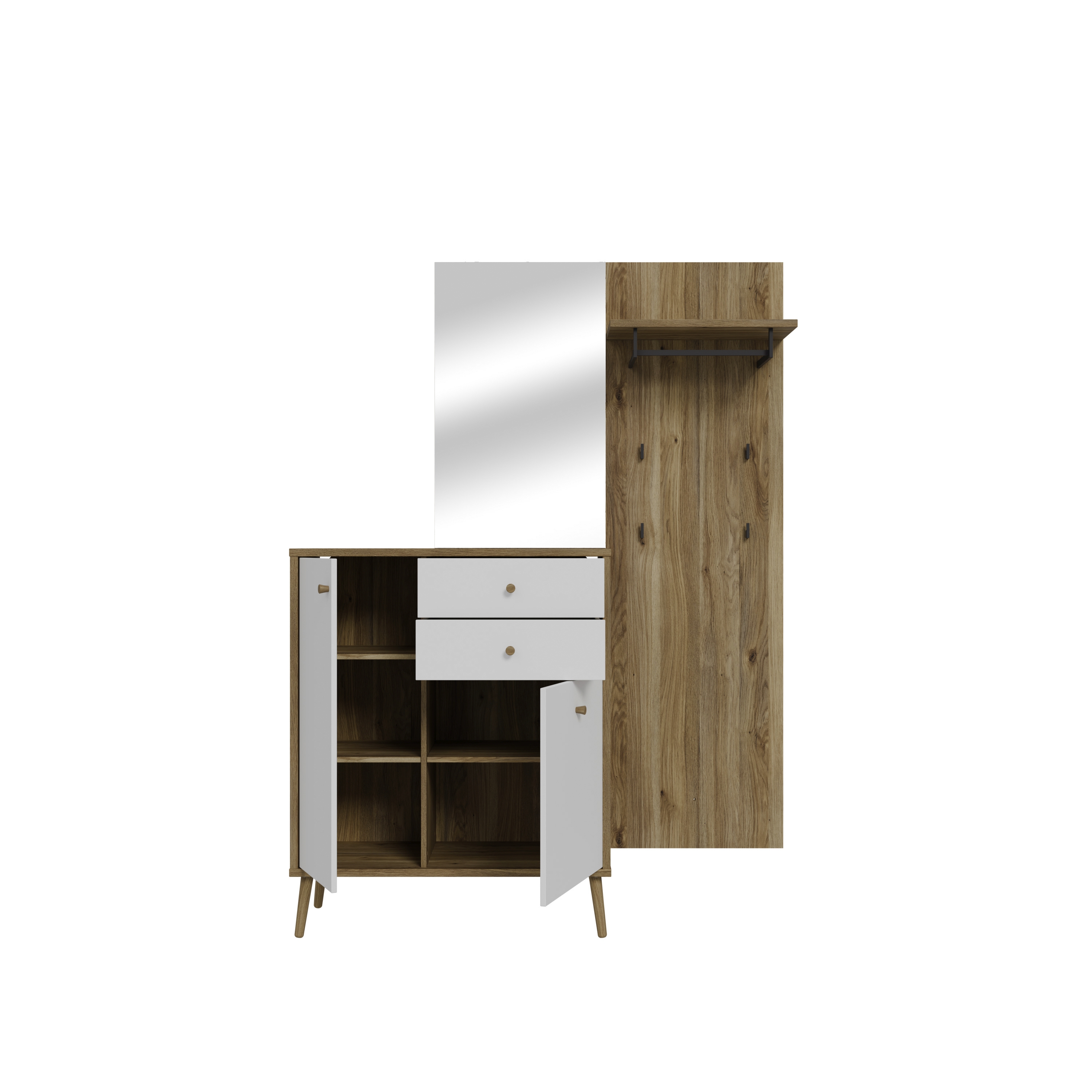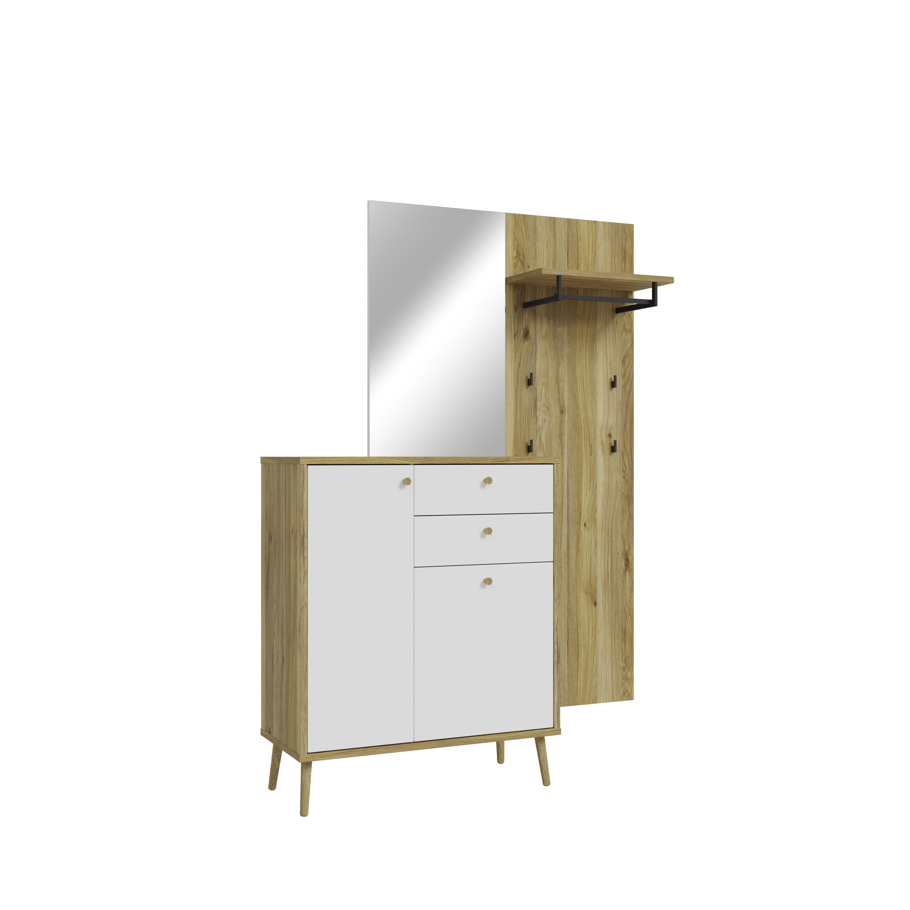 1 panneau portemanteau avec 1 tablette porte chapeaux, 1 barre de penderie et 4 crochets à vêtements