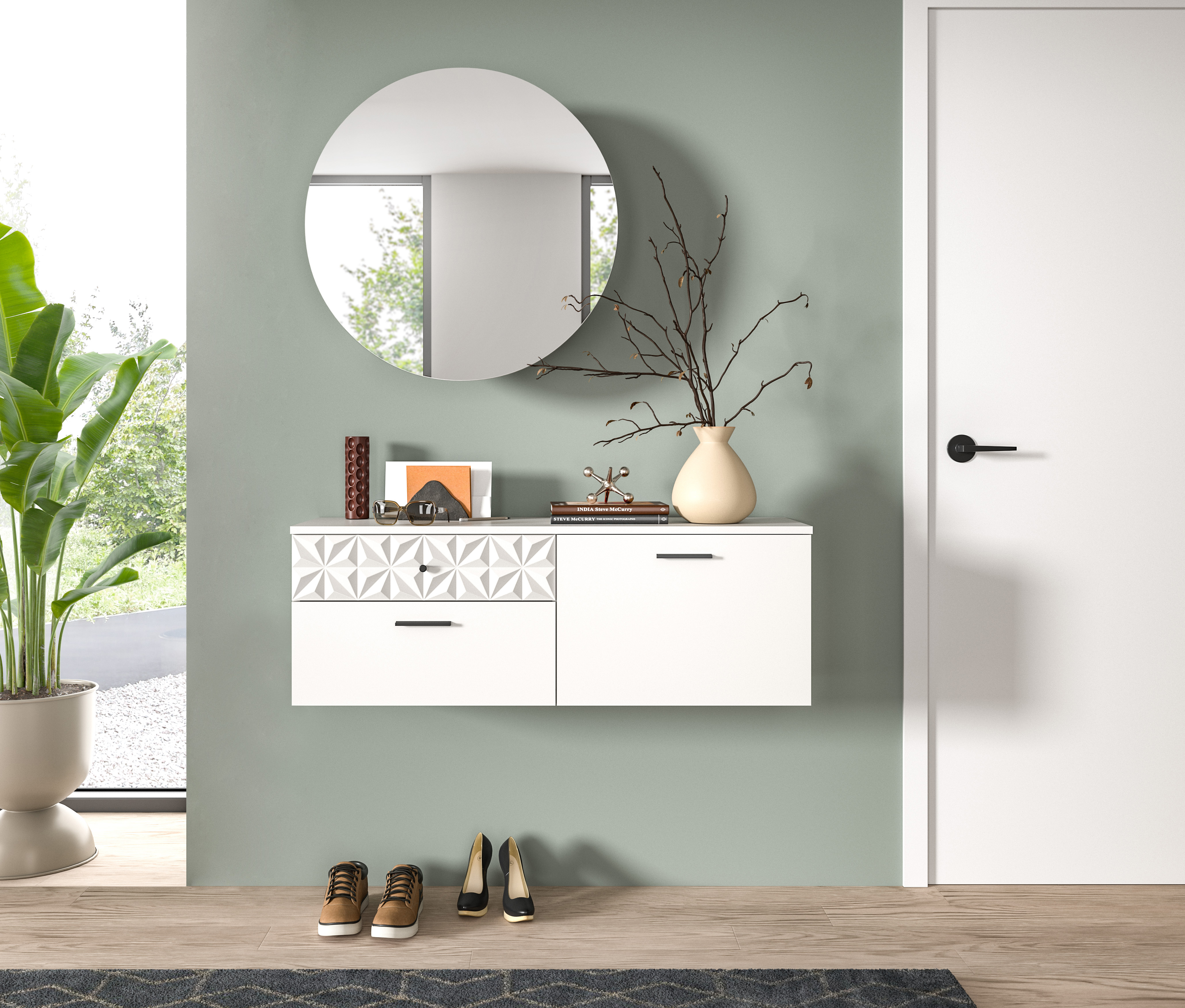 1 meuble à chaussures à suspendre avec 2 tiroirs et 1 abattant