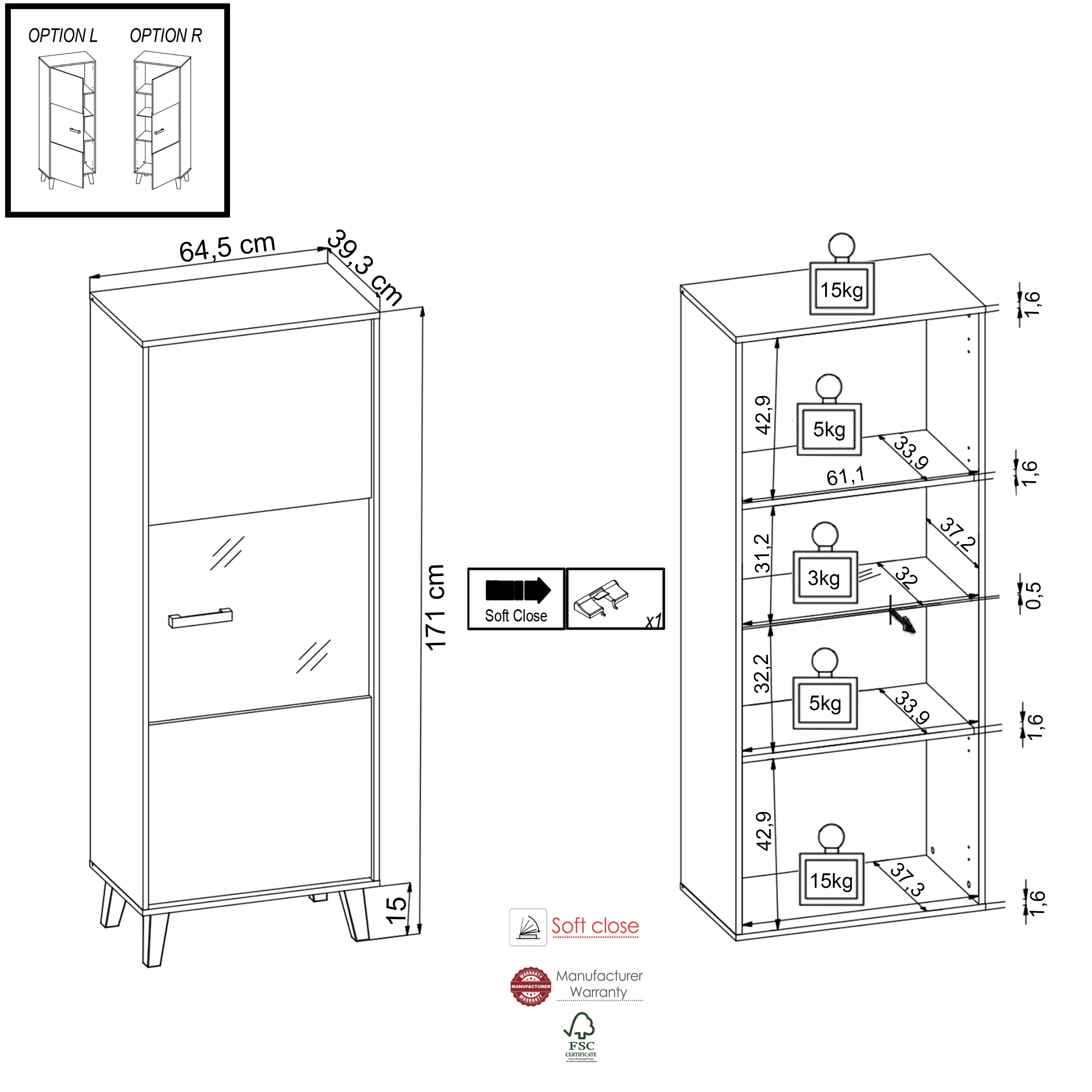 - Ce meuble est en bois certifié FSC® et en verre ; les charnières sont entièrement en métal.