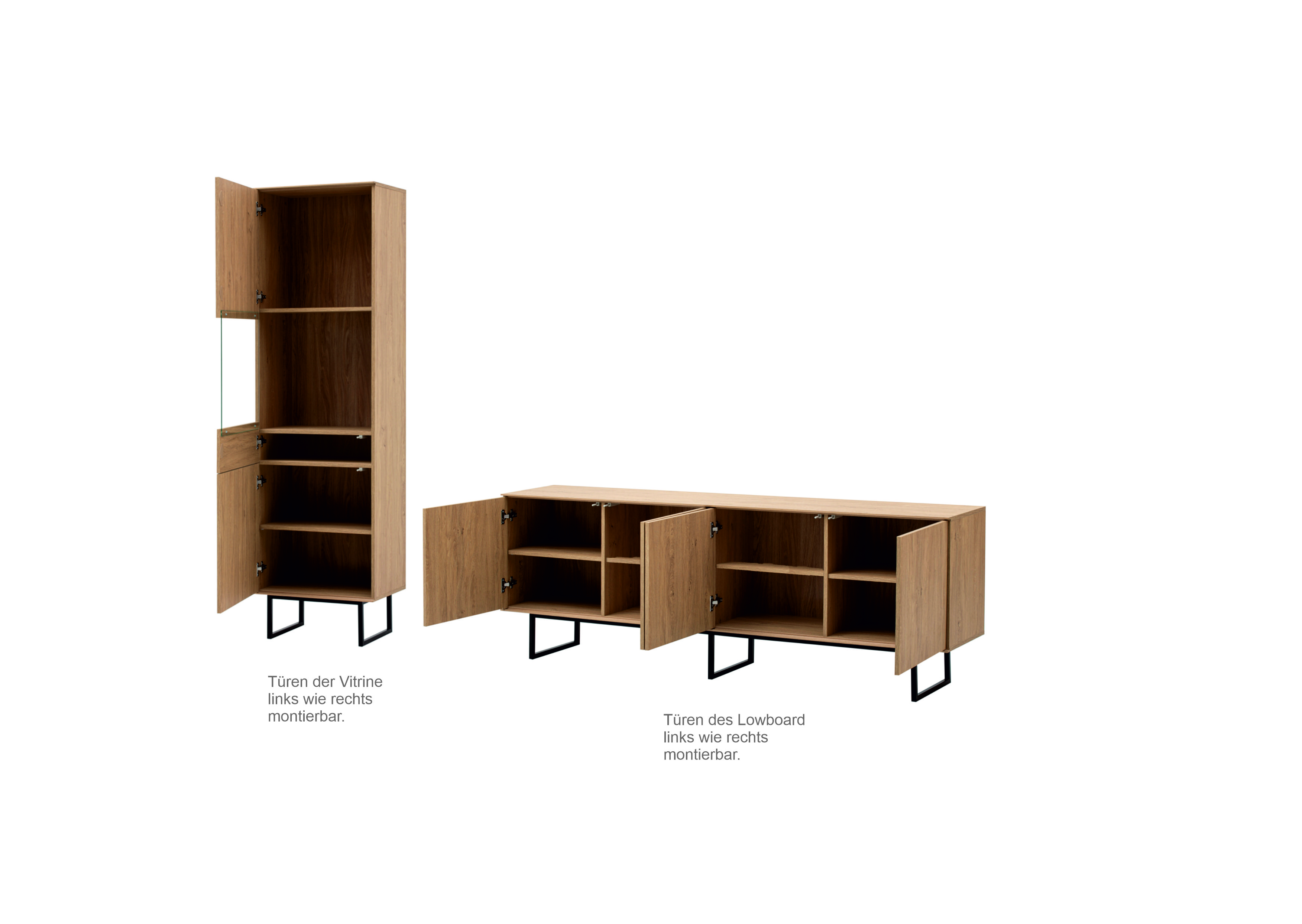 1 Vitrine mit 1 Glastür, 1 Tür, 2 Einlegeböden und 2 Konstruktionsböden