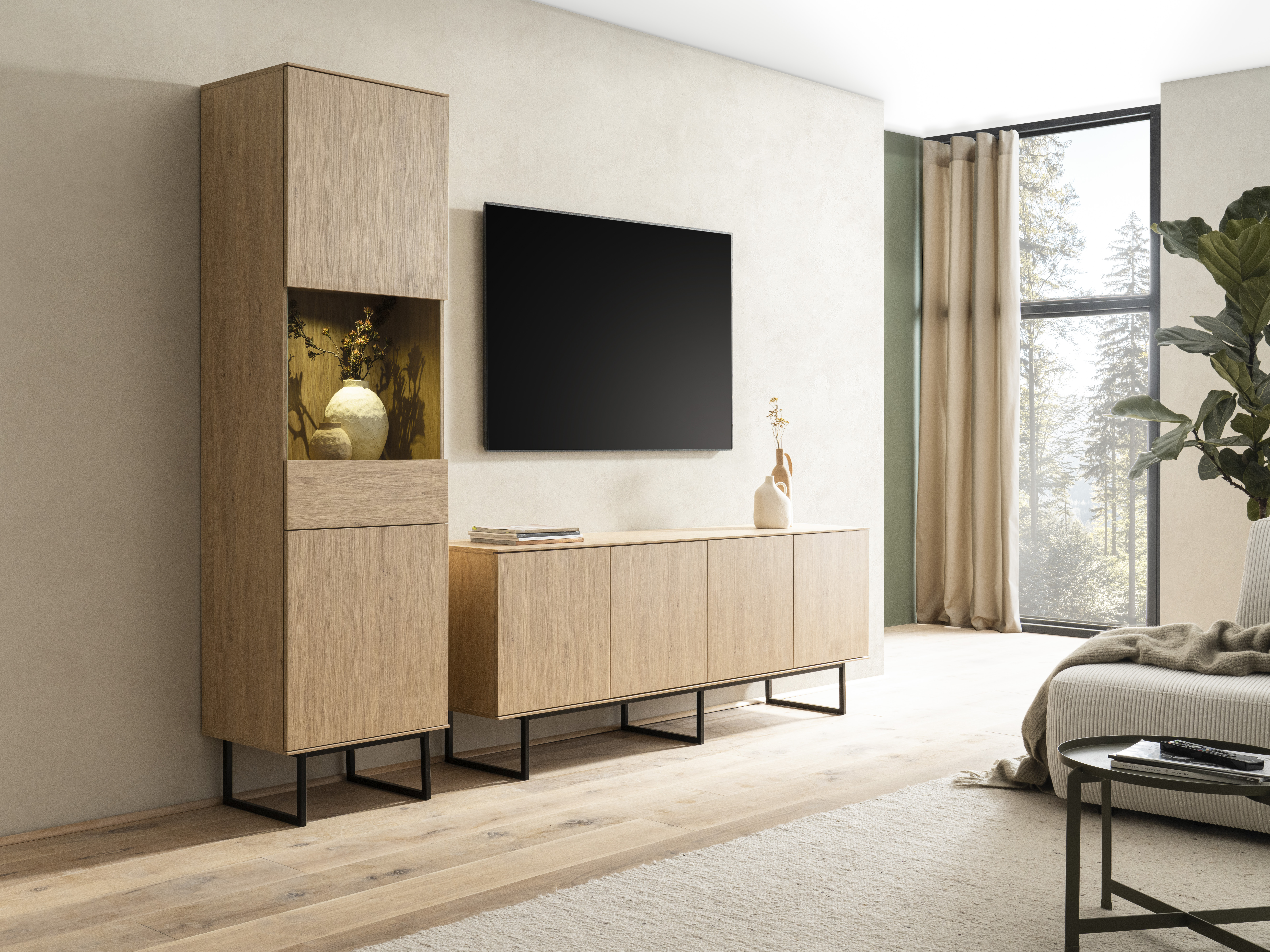 1 Lowboard mit 4 Türen und 4 Einlegeböden